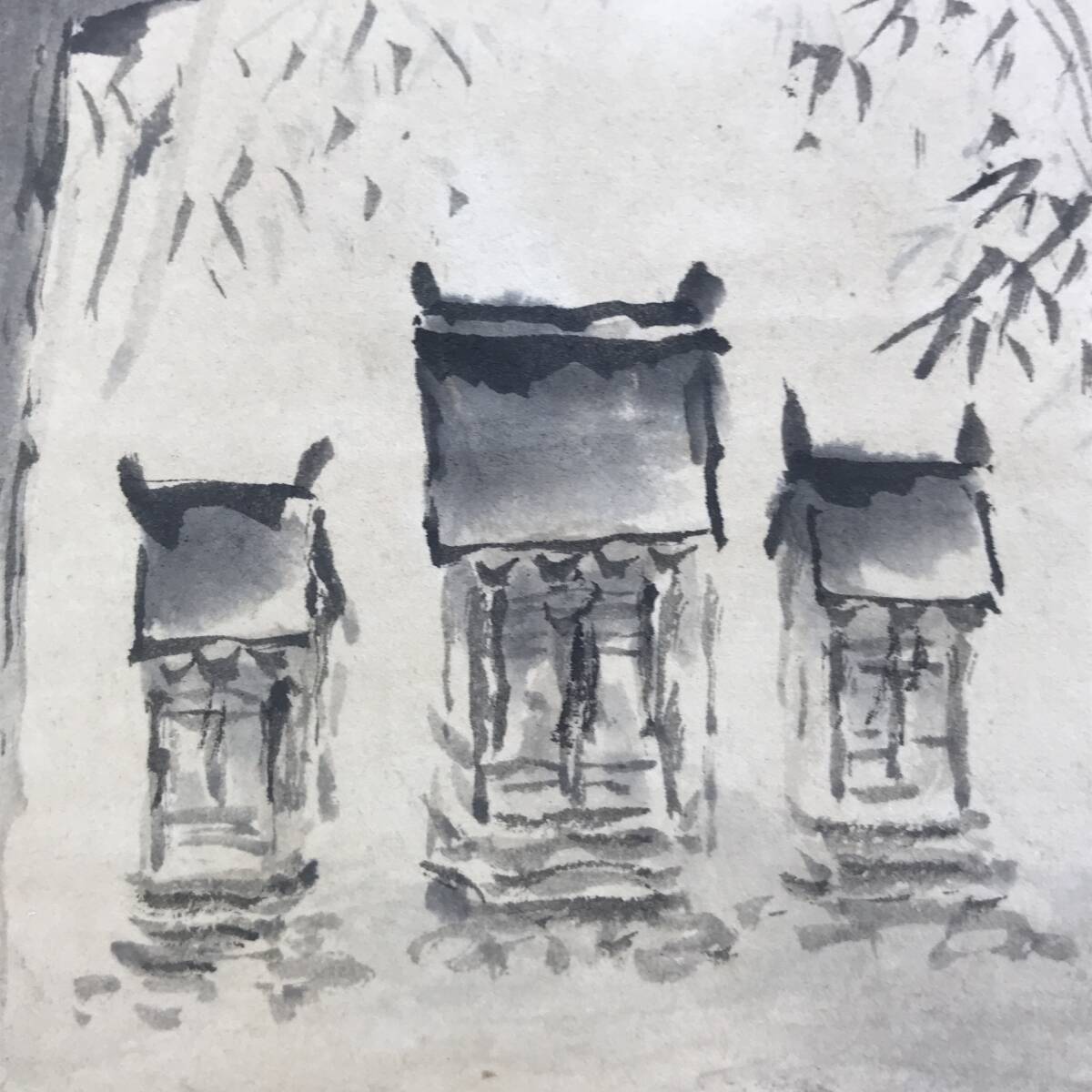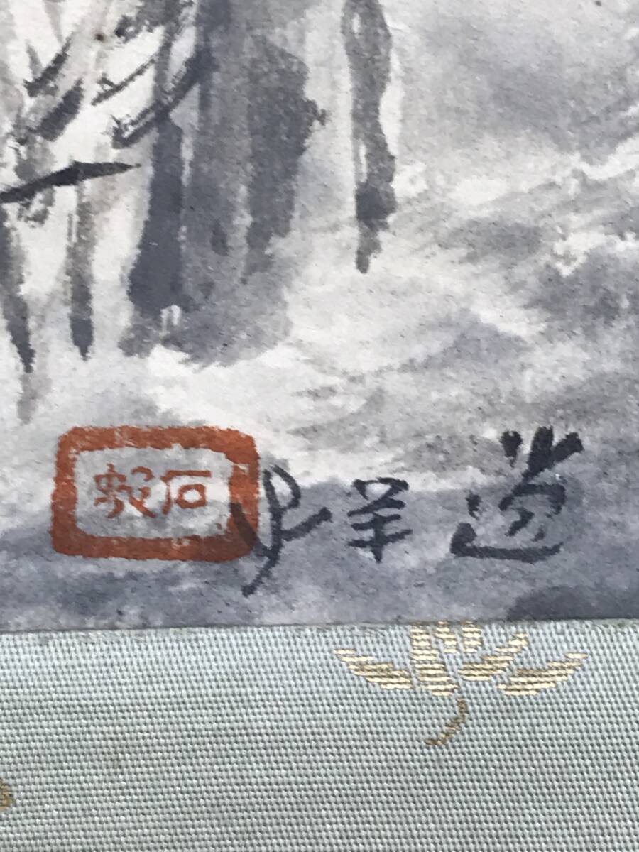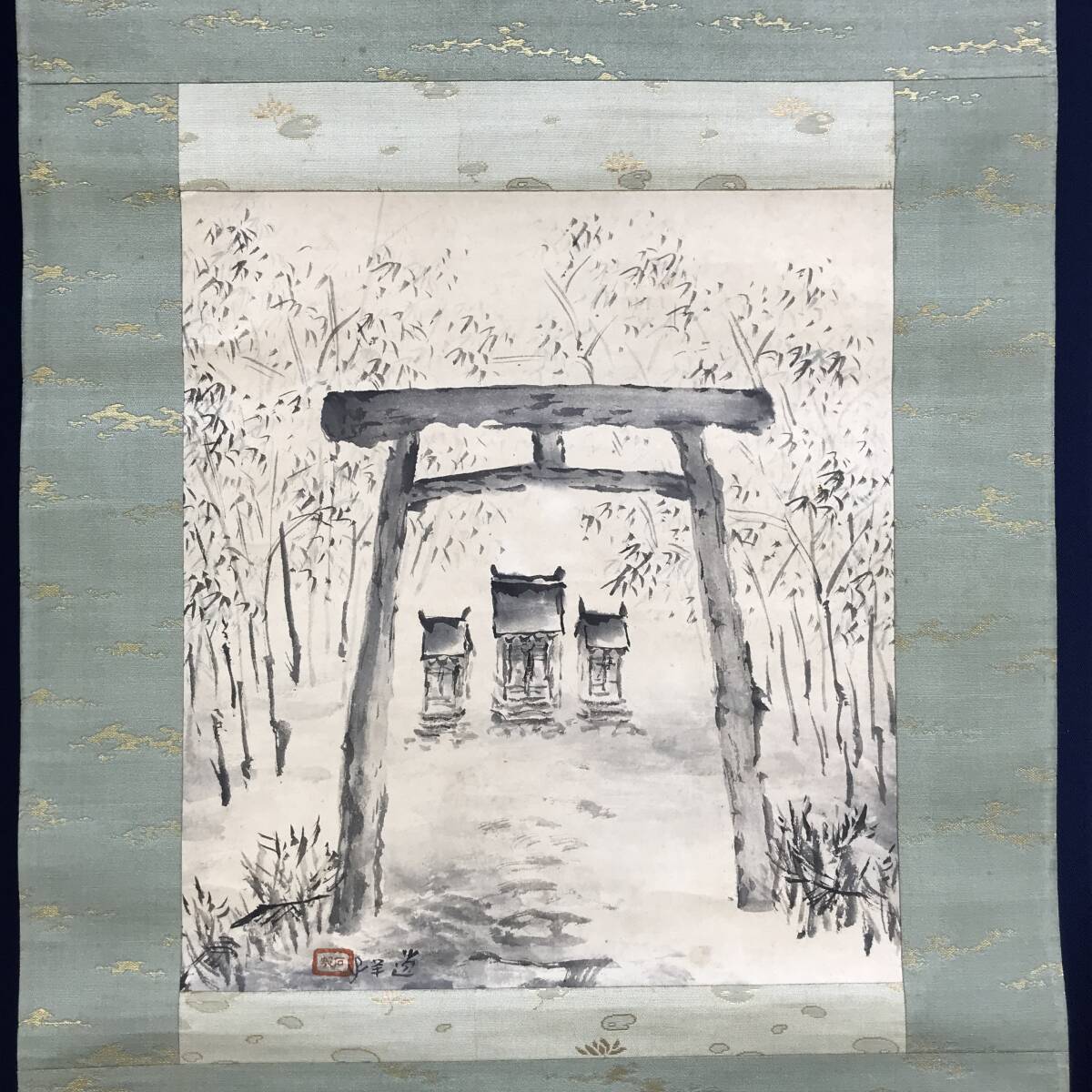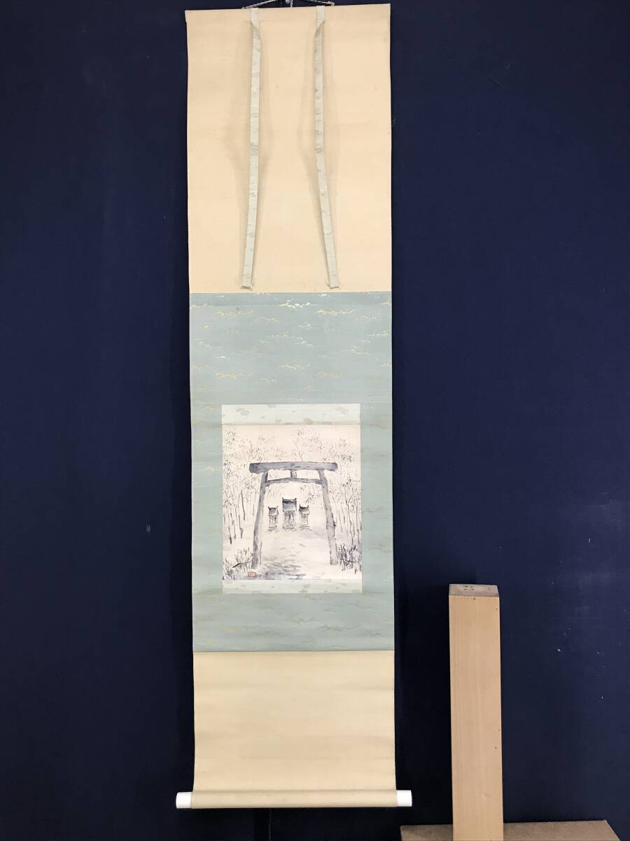 真作/石邨/野々宮/鳥居宮之図/山水図/掛軸☆宝船☆AF-784