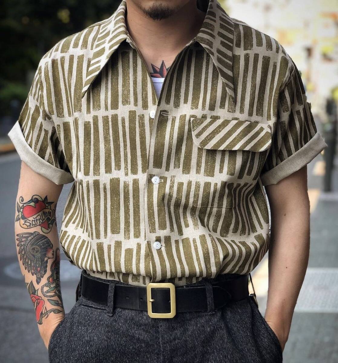1940年代後期から1950年代初頭くらいのリゾートウエアを意識して企画したオープンカラーシャツです。
