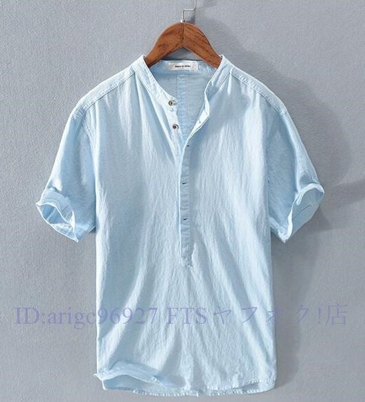 B1659☆新品シャツ 半袖 メンズ リネン トップス カジュアルシャツ 開襟シャツ 麻綿 カプリシャツ T-シャツ ファッション サマーシャツ