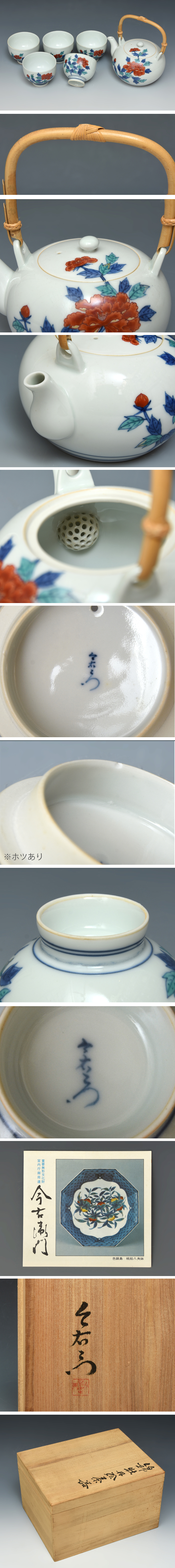 十三代 今泉今右衛門 (造) 錦牡丹絵 茶器セット / 急須 煎茶碗 5客 / 共箱 しおり 茶道具 煎茶道具 有田焼 陶磁器 |
