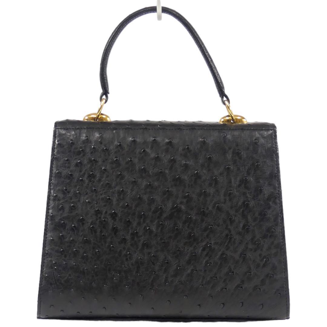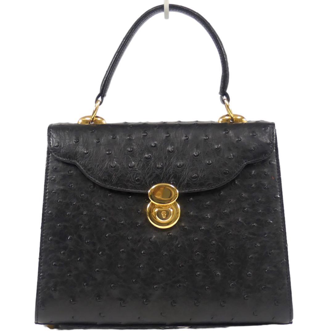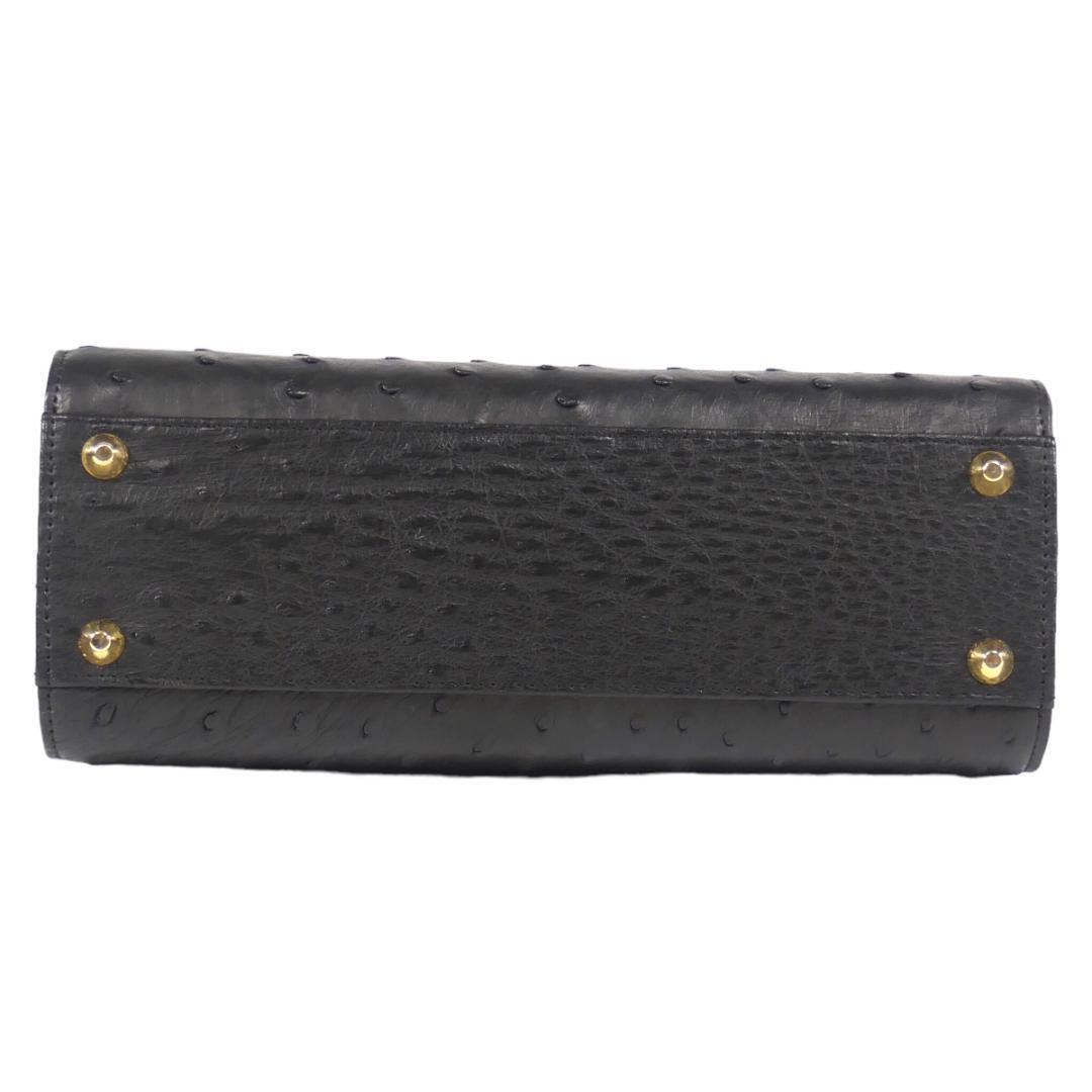 即決★ESATTO★オールレザーハンドバッグ エザット 黒 オーストリッチ 本革 手提げバッグ 本皮 旅行 カバン 袋付