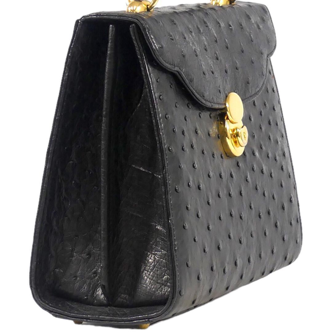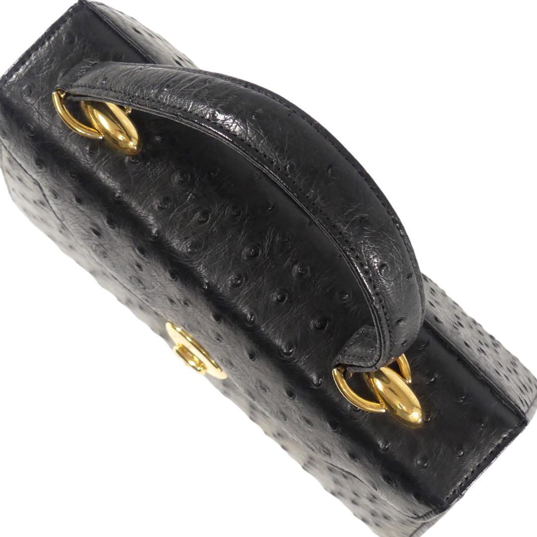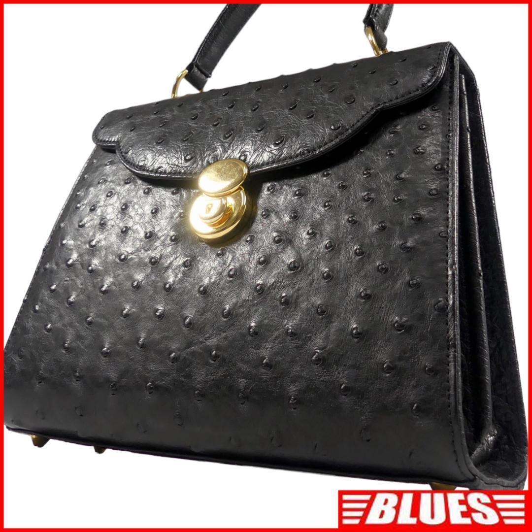 即決★ESATTO★オールレザーハンドバッグ エザット 黒 オーストリッチ 本革 手提げバッグ 本皮 旅行 カバン 袋付