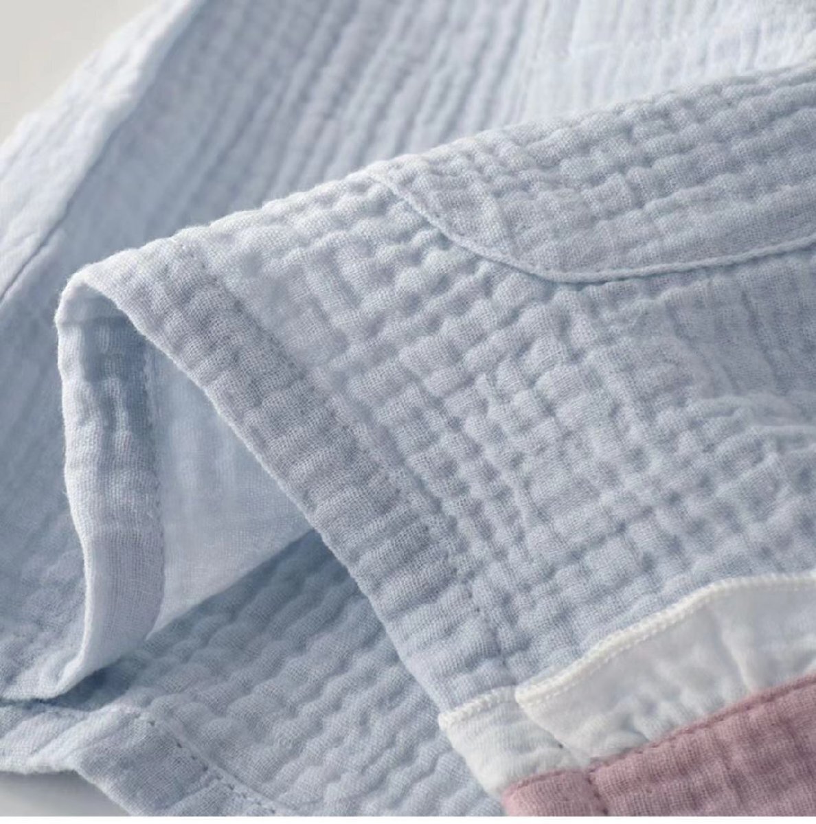 生地と生地の間に空気の層が生まれるので通気性抜群、お風呂上りにも気持ちの良い素材です。