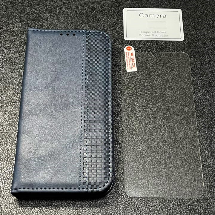 【3点フルセット】AQUOS wish/wish2 レザーケース 「ネイビー」+強化ガラス保護フィルム+カメラレンズガラス 耐衝撃スマホケース アクオス