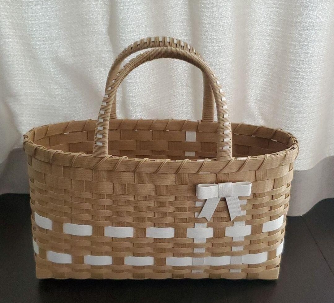 エコクラフトテープで作ったりぼん付きのかごバッグです。