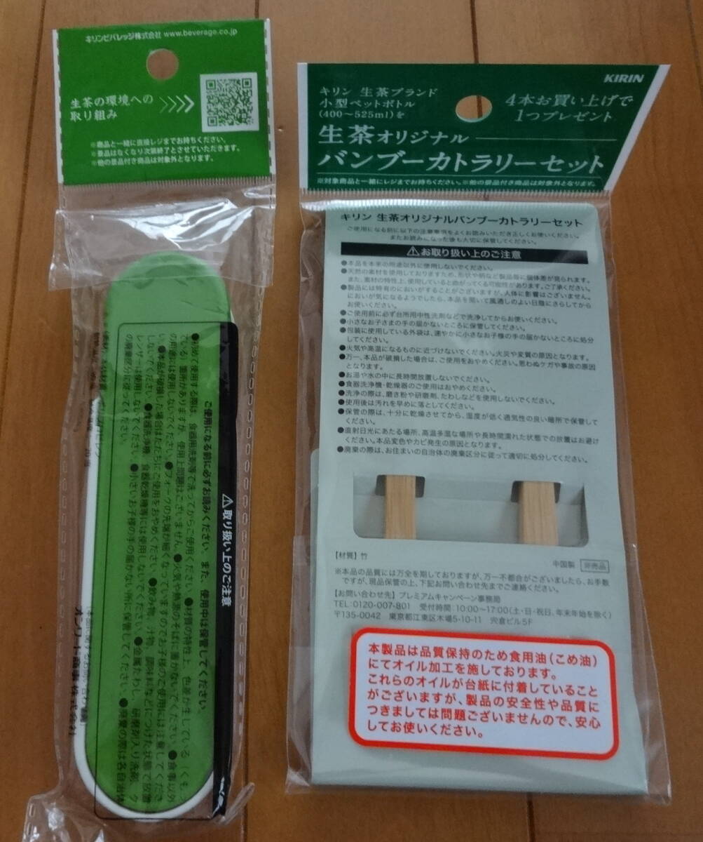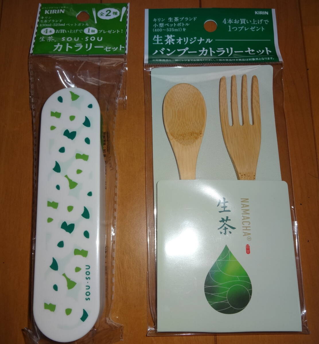 キリン生茶sou・souカトラリーセットとバンブーカトラリーセットです。