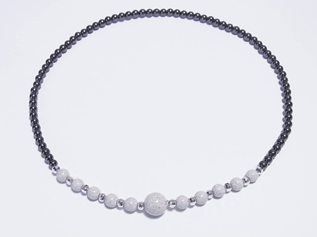 北投石、磁気ヘマタイトを使ったストレッチ・ネックレスです | |||