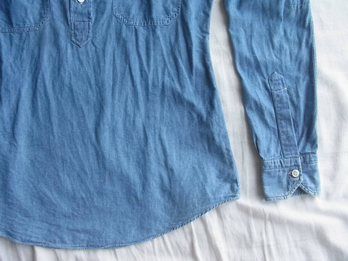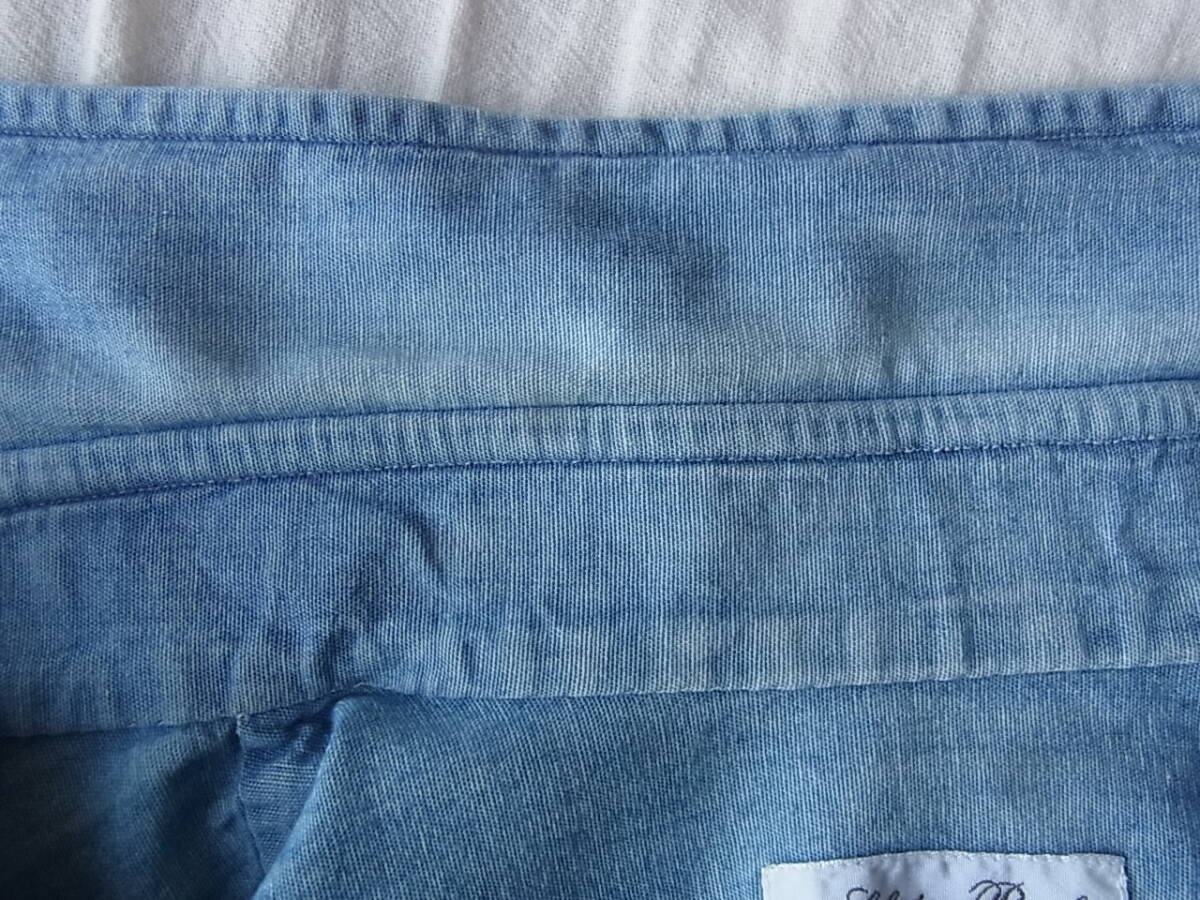 サルヴァトーレ ピッコロのインディゴシャンブレー素材でプルオーバーのワイドカラーシャツになります。USEDで着用感と多少の色褪せは御座いますが、それ以外には特に目立ったダメージ等は御座いません。