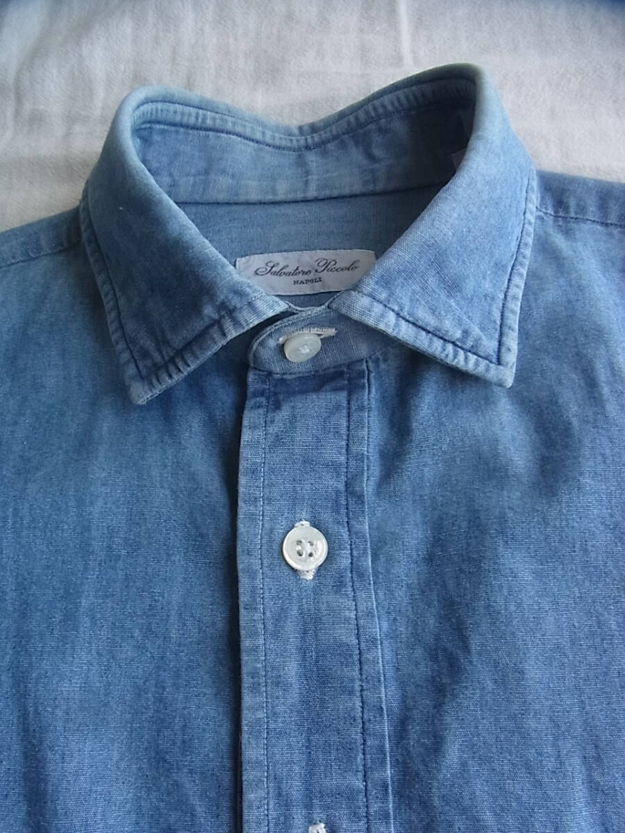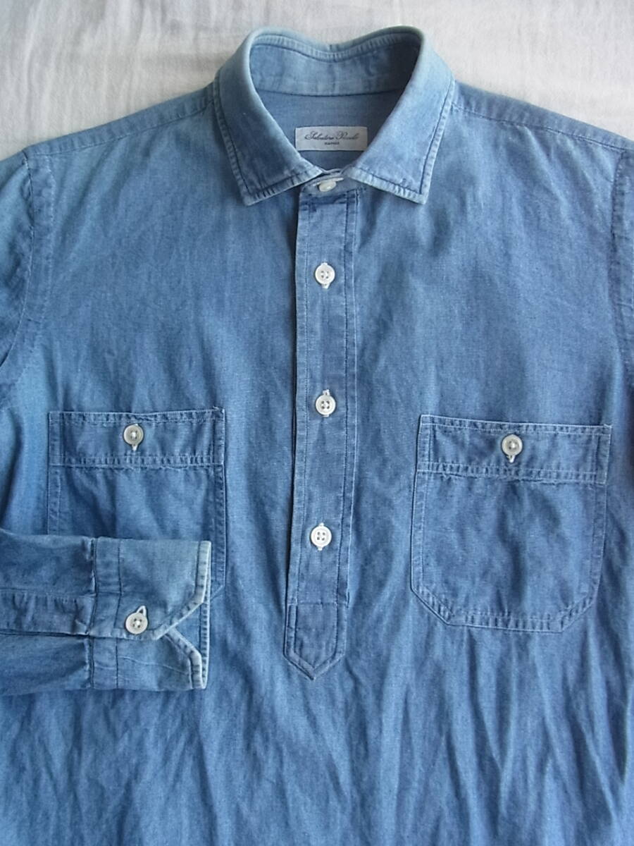Salvatore Piccolo サルヴァトーレピッコロ インディゴシャンブレー素材 プルオーバー ワイドカラーシャツ サイズ 40