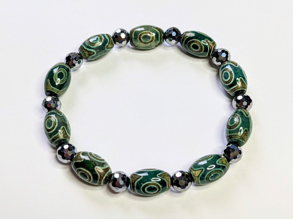 高純度テラヘルツと磁気ヘマタイトと天然石を使ったブレスレットです | |||