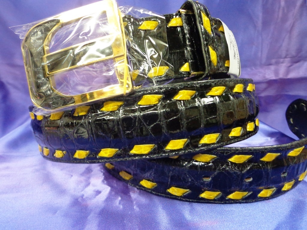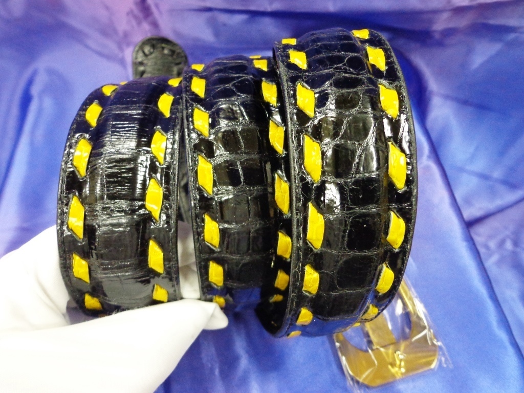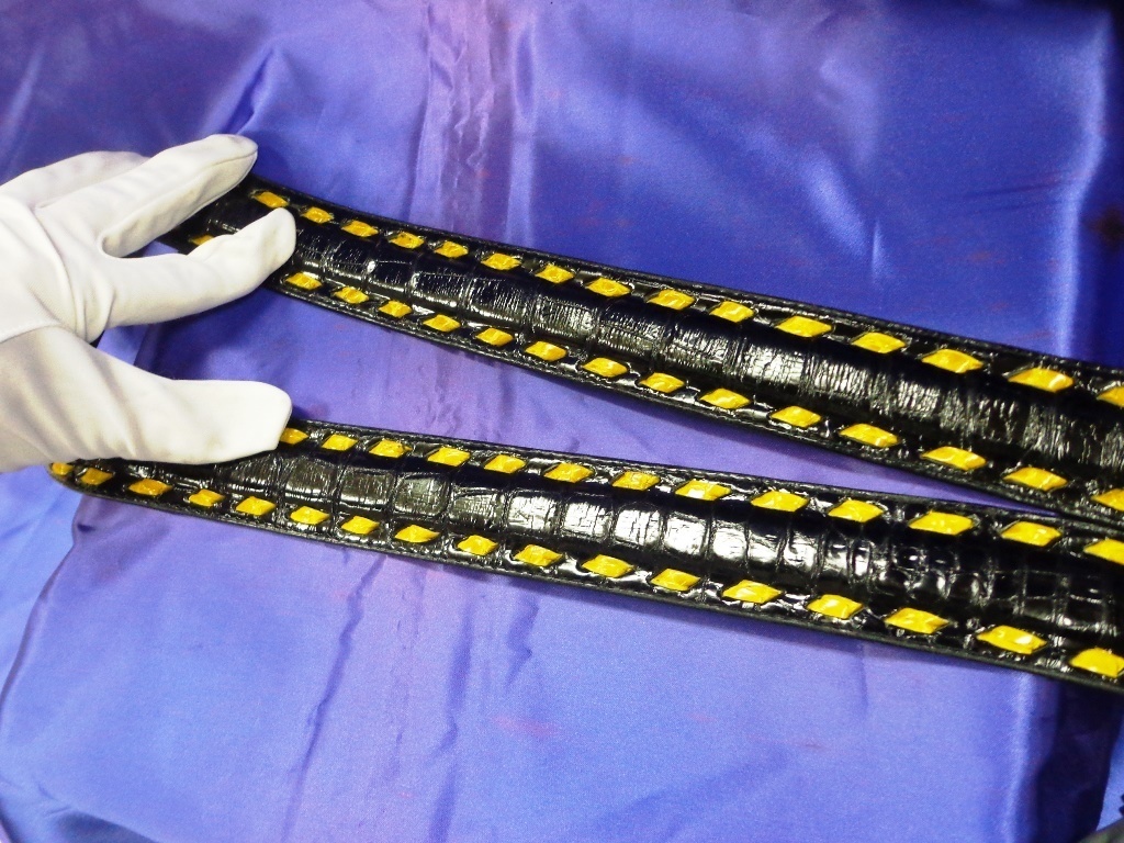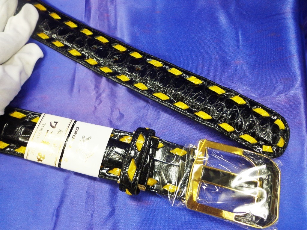 本物クロコ&ステッチ:長尺ベルト40mm(黒&黄)TA‐22 | |