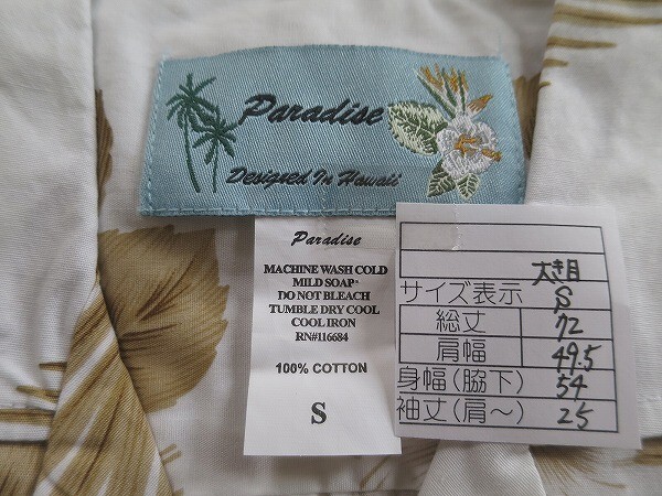 未使用Paradise ハワイ アロハシャツ アメリカのSサイズ