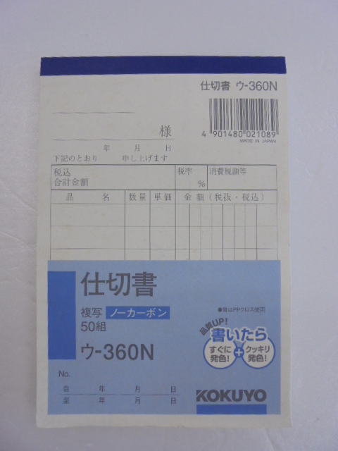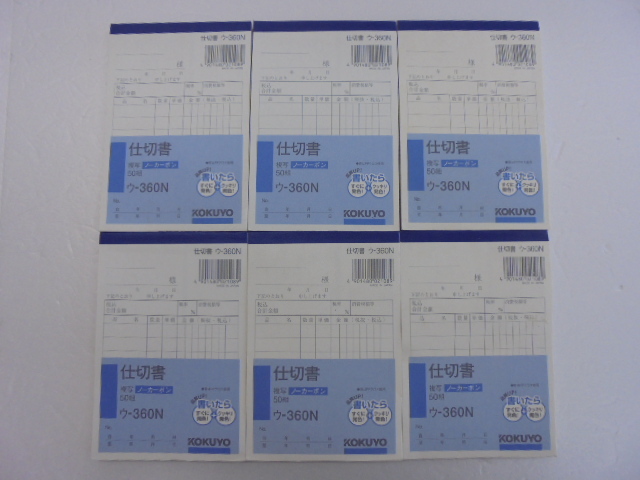 【KCM】2pbg-461-6s★未使用品★【KOKUYO/コクヨ】 仕切書 B7 タテ型 8行 50組 6冊セット 複写簿 ノーカーボン ウ-360N