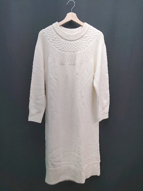 ◇ rope picnic ニット クルーネック ラグラン袖 冬向け 長袖 ロング丈 ワンピース サイズ38 ホワイト レディース E