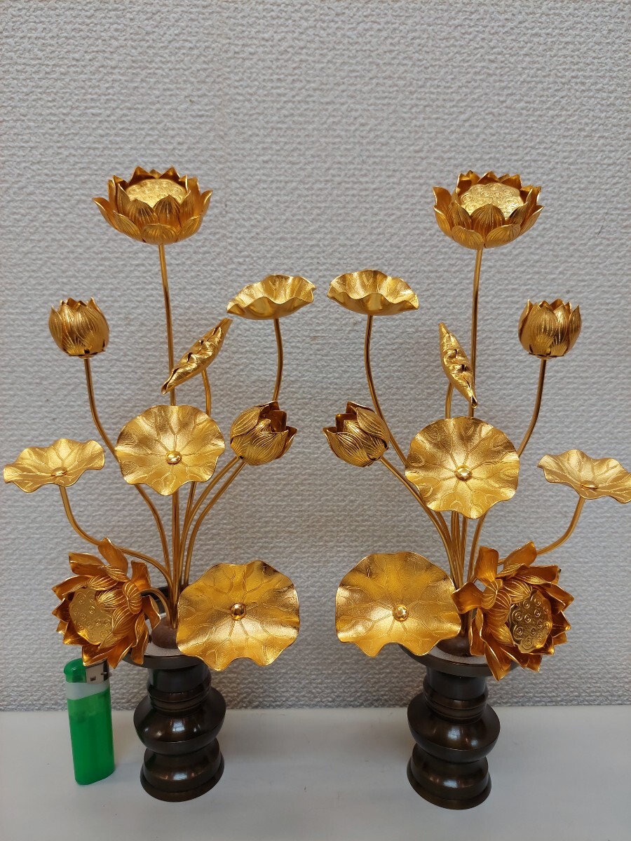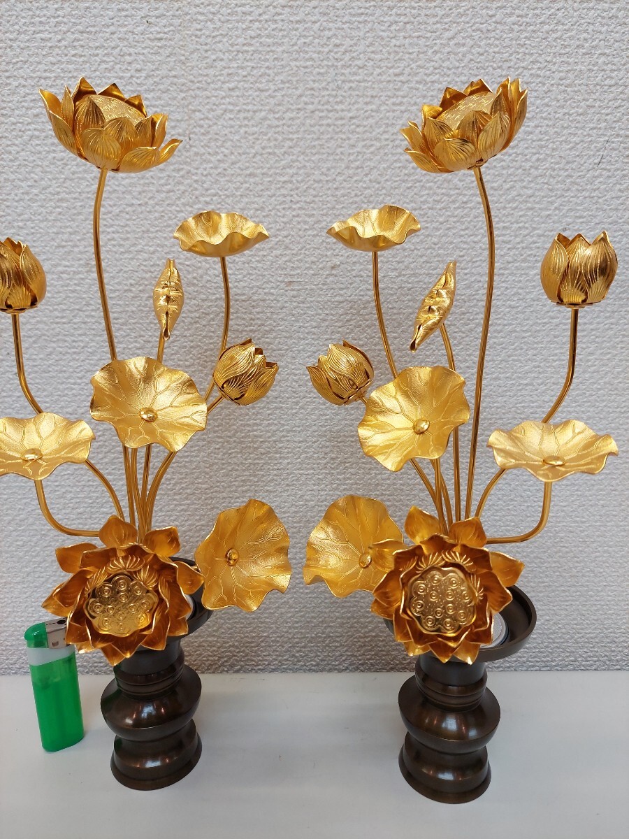 常花 金色 総丈36センチ 八寸9本立 アルミ製 訳アリ花立 三寸五分 一対 在庫整理 アウトレット 仏壇 お内仏 会館 位牌堂