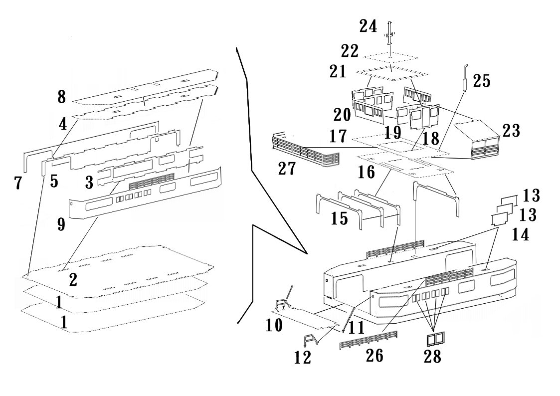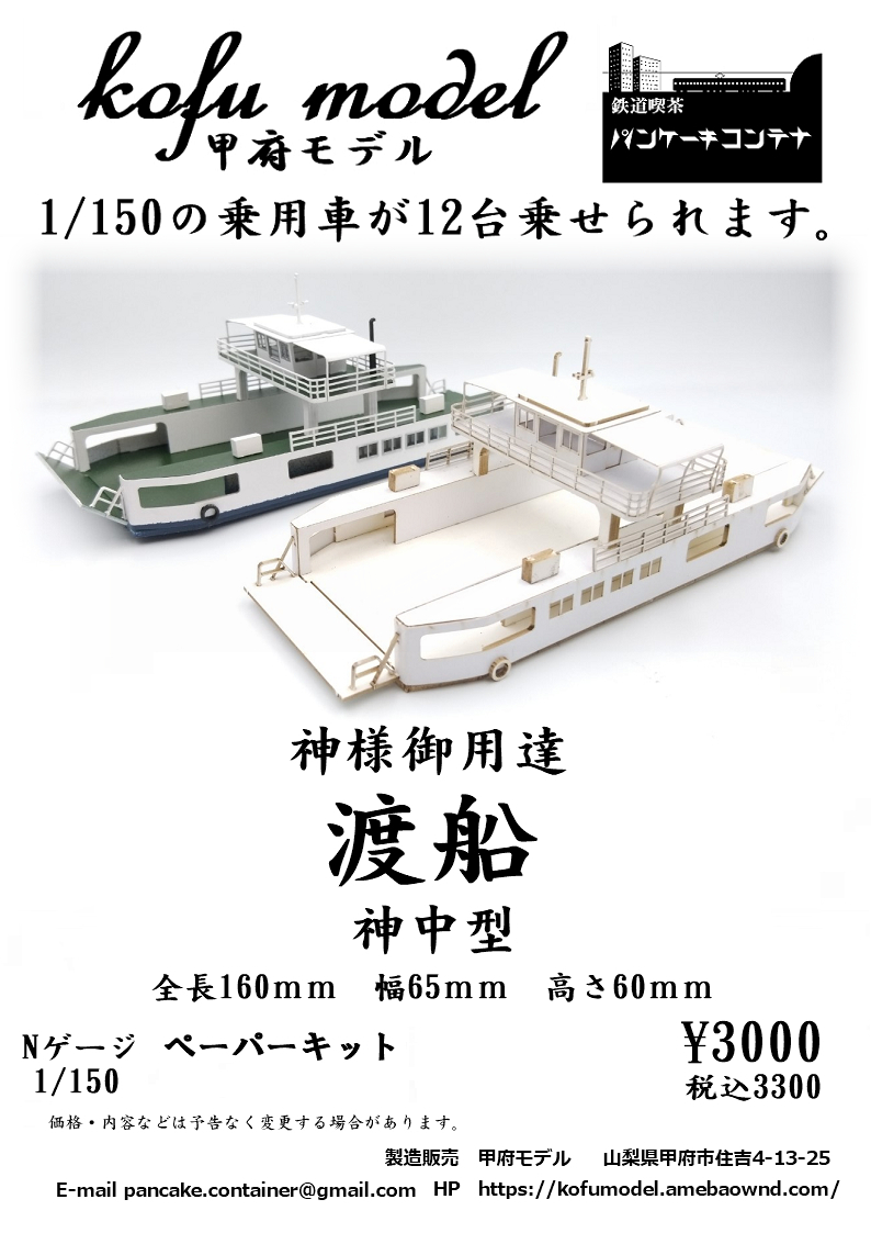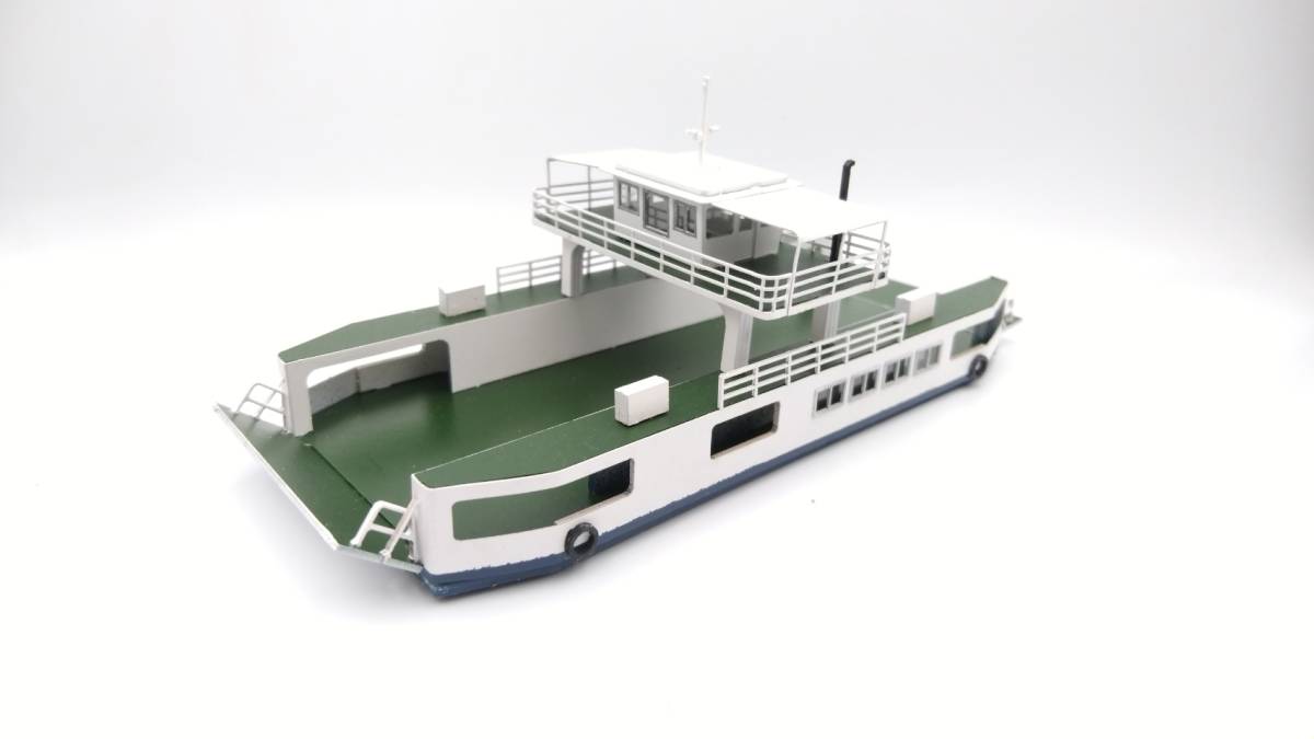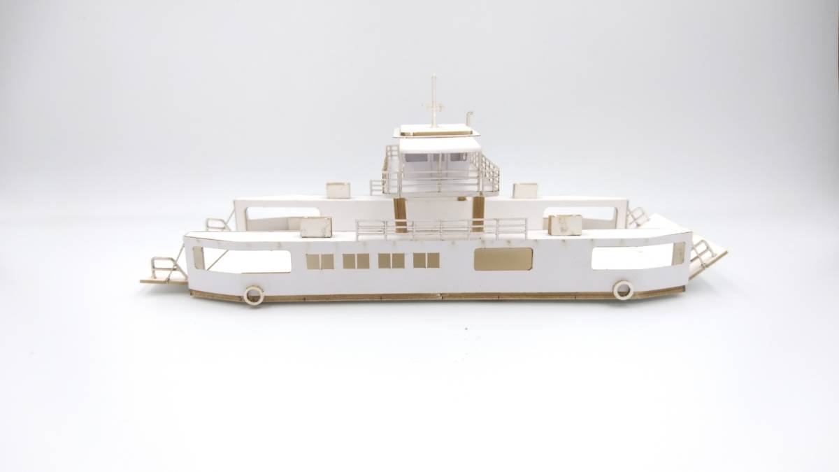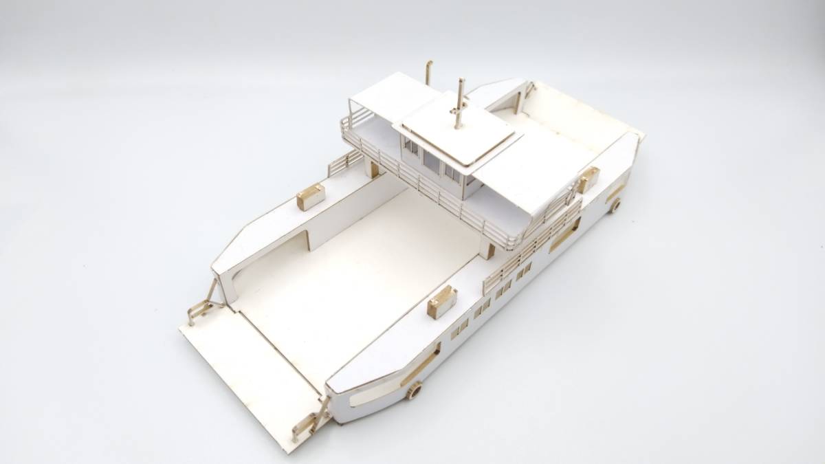 Nゲージ(1/150)の渡船(神中型)のレーザー切り抜き済みペーパーキットです。