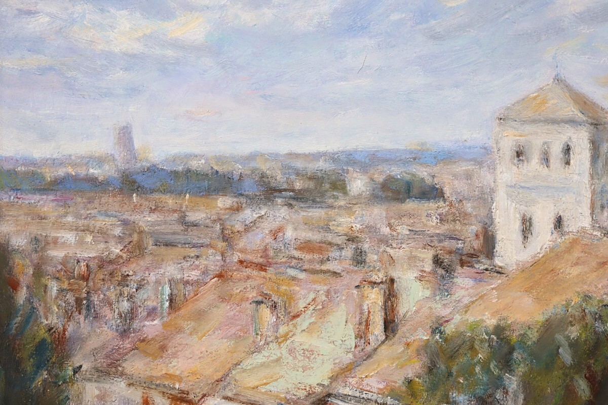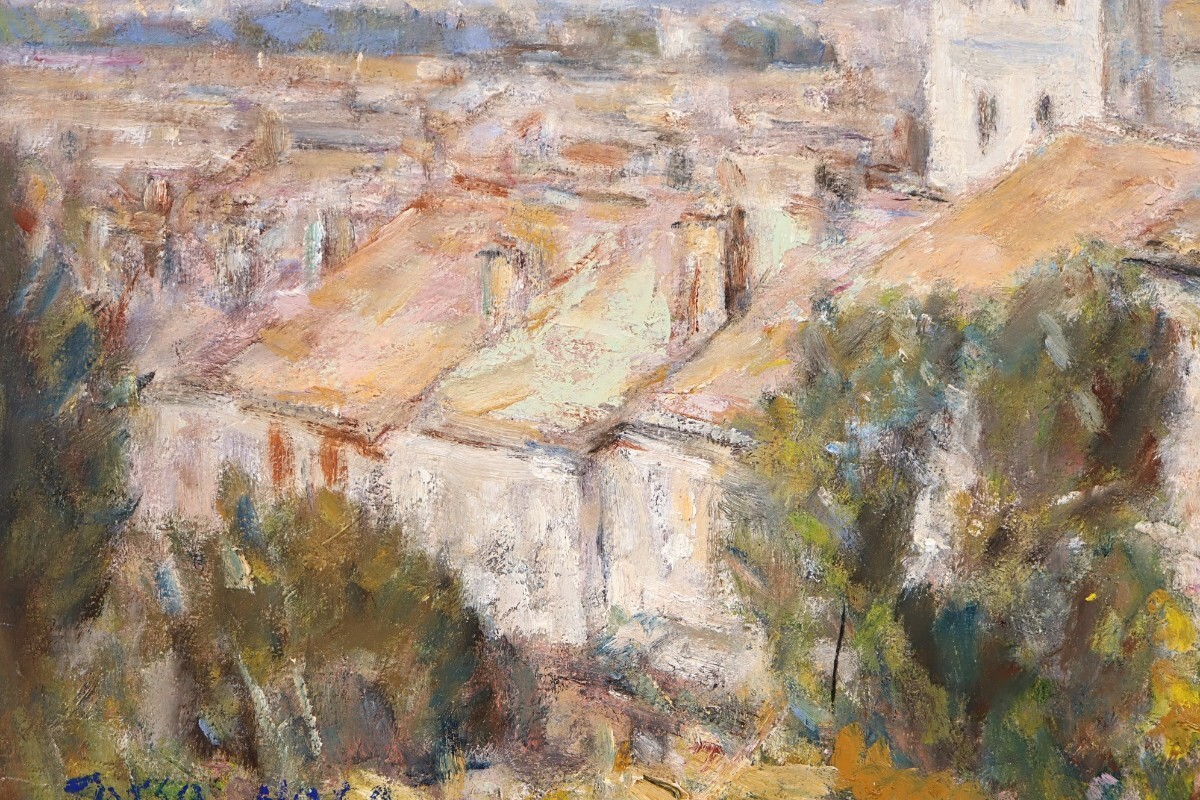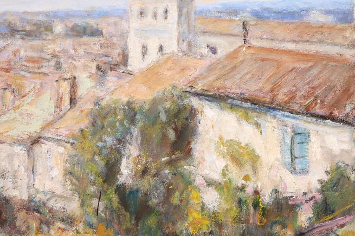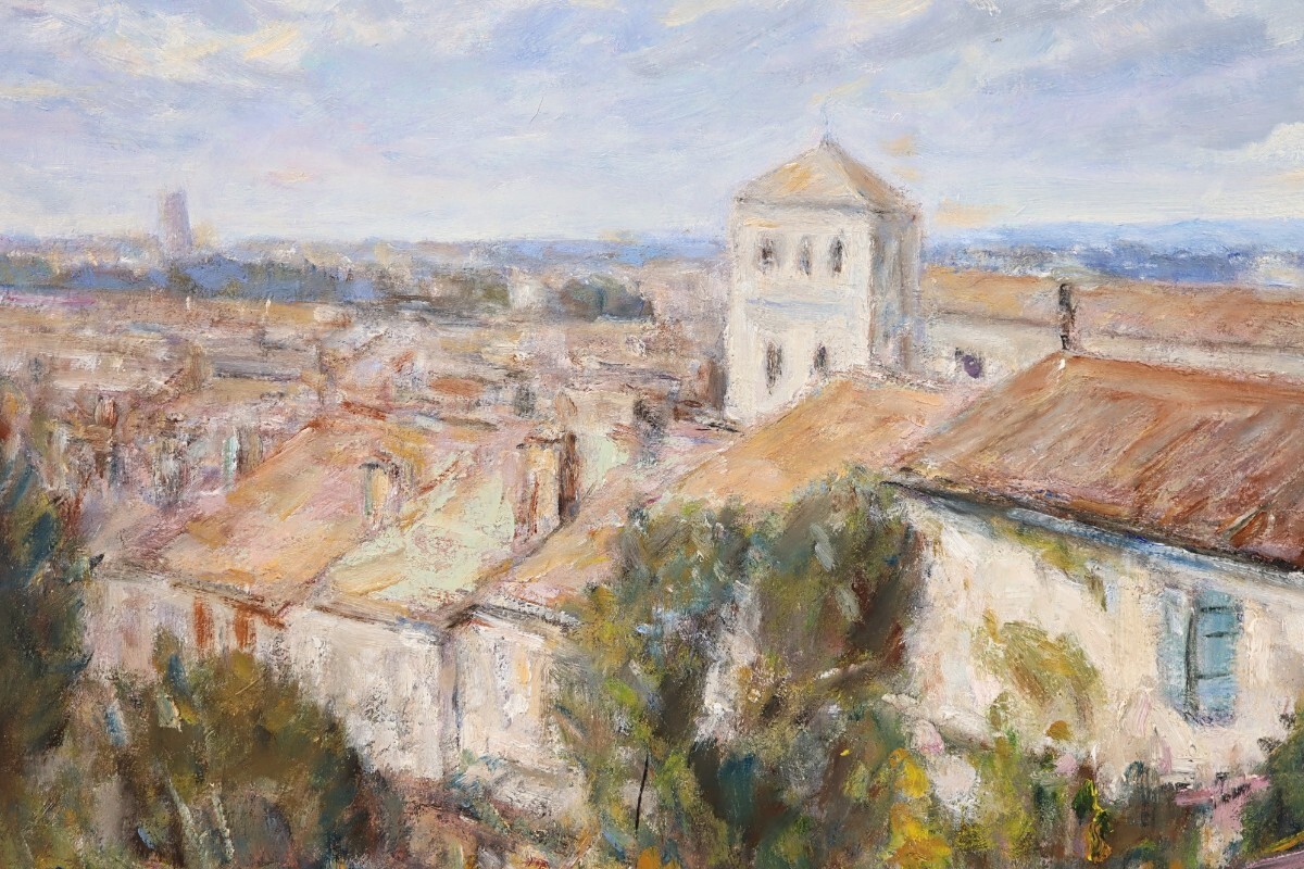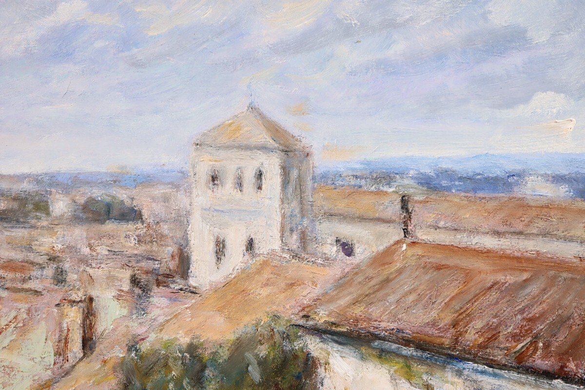 真作 秦辰男 1996年油彩「南フランス タラスコン」画寸F4 島根県出身 日本美術会会員 赤松麟作 須田国太郎に師事 高台から望む町並み 9133