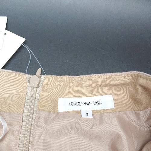 ◇ ◎ ●未使用● NATURALBEATYBASIC 春夏 エレガント オフィス ひざ下丈 フレア スカート サイズS ベージュ レディース E