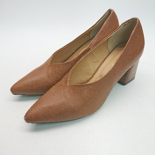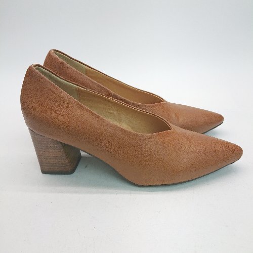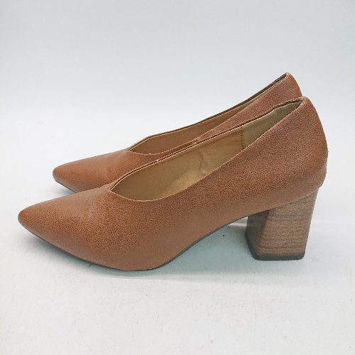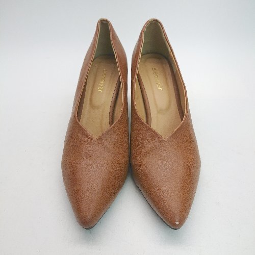 ◇ JEANASIS ポインテッドトゥ ハイヒール 太ヒール かわいい パンプス サイズL ブラウン レディース E