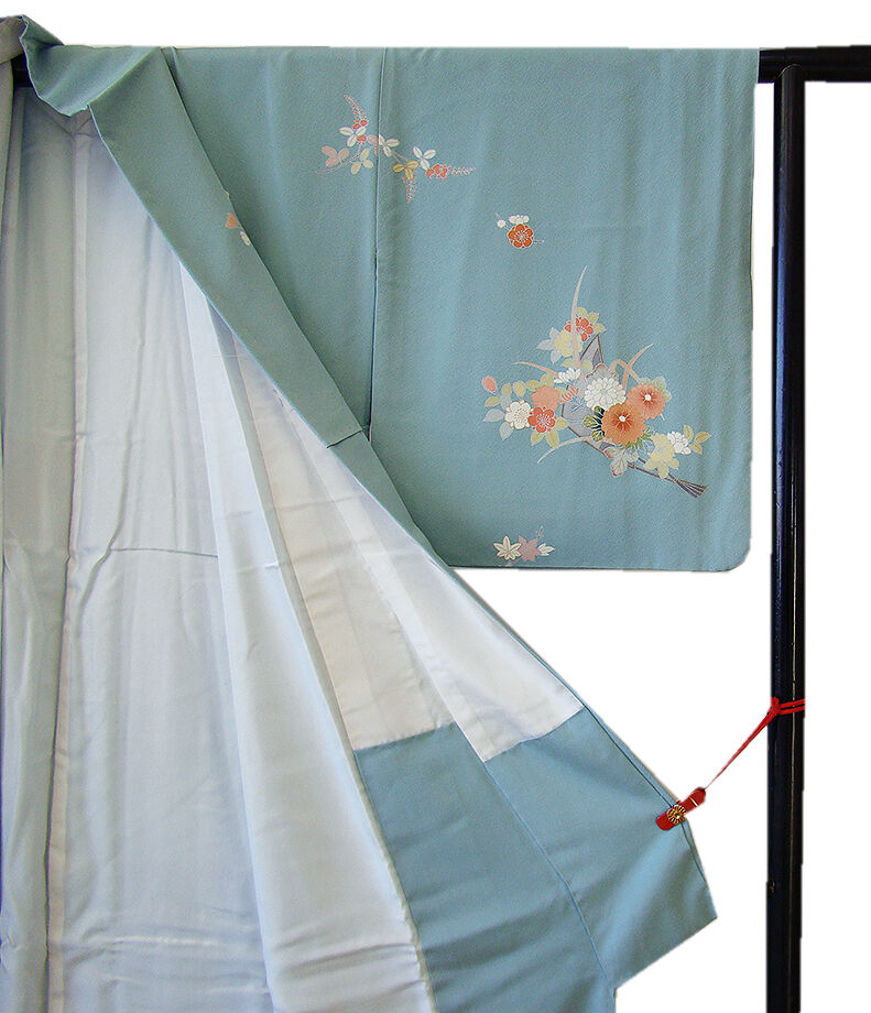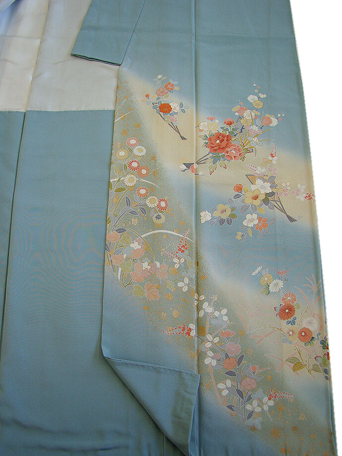 | 商品説明 | こちらのお品は「袷」でございますので、10月~5月までお召頂ければと思います。 大変にしなやかで柔らかな手触りの着心地良い重めの極上ちりめん地の生地、 水浅葱色地に蒸栗色ぼかし染に花草柄の染柄に金彩加工仕立て、 正統派のお着物として一枚は欲しい逸品の素敵なお着物です。 八掛は共色に柄入り(正絹)、幅広い年代の方にお召頂けます。 |
