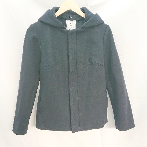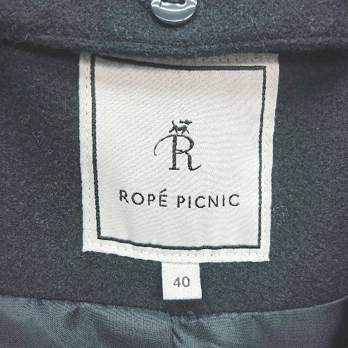 ◇ 美品 ROP’E PICNIC フード取り外し可能 ノーカラーコート メルトン生地 長袖 コート サイズ40 ブラック レディース E