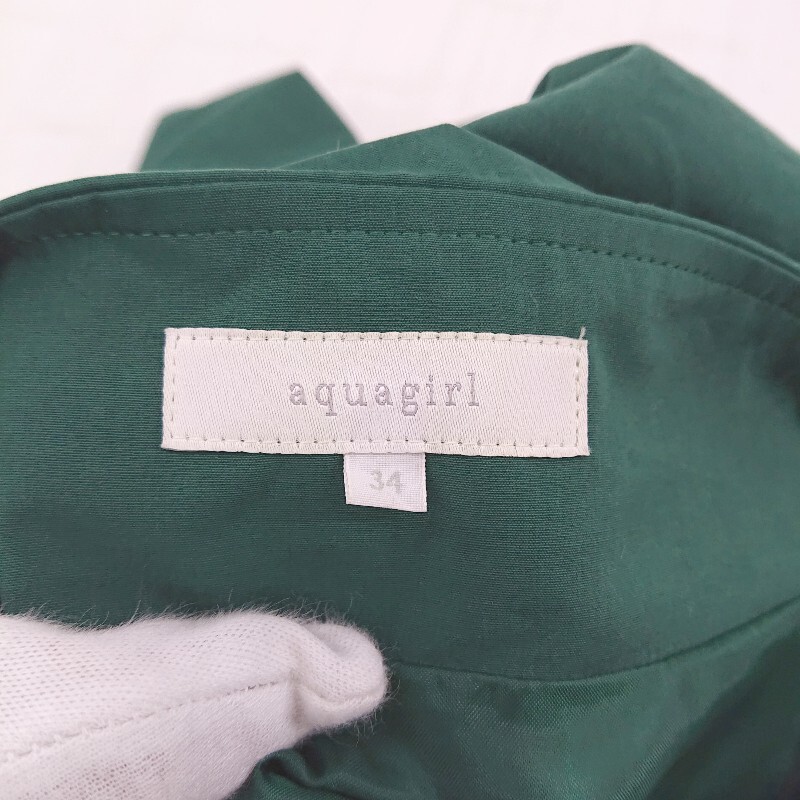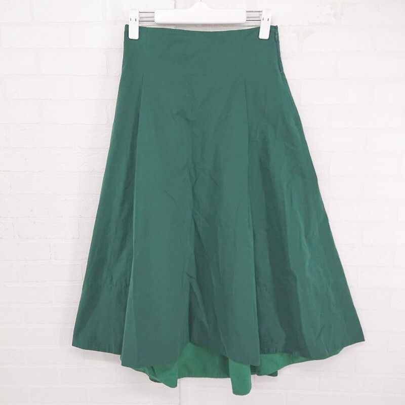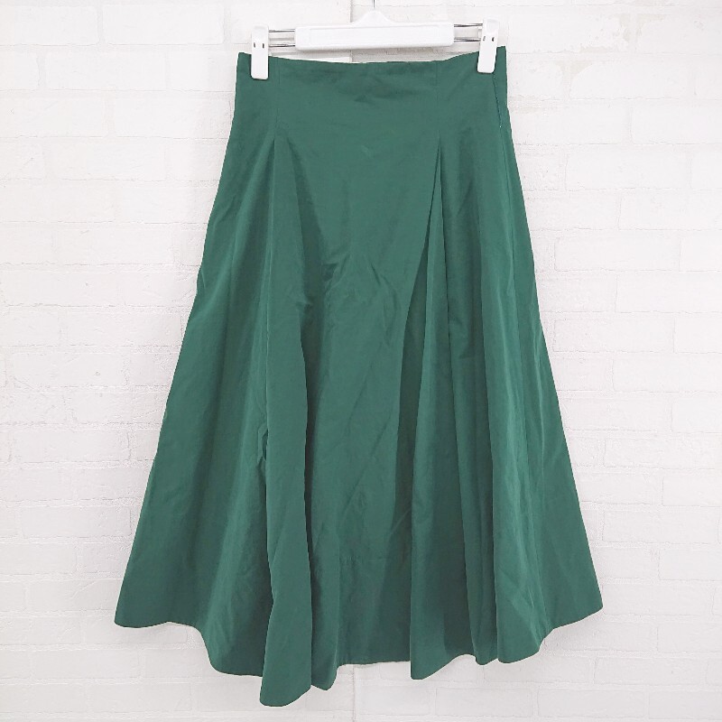 ◇ aquagirl アクアガール タック キレイめ ロング フレア スカート サイズ34 グリーン系 レディース E