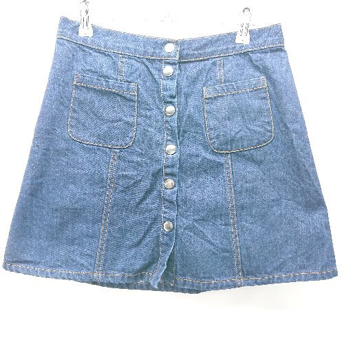 ◇ BDG ビーディージー フロントボタン デニム シンプル カジュアル ミニ 台形 スカート サイズM ブルー レディース E