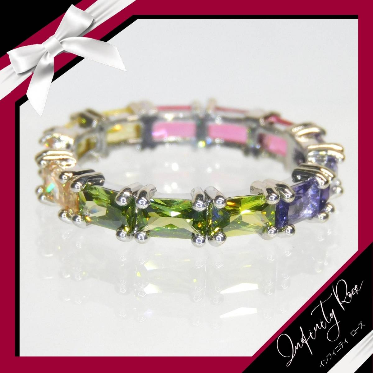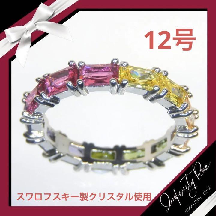 (1156)12号 シルバー大人カラフル シンプル ポップ クリスタル細リング 指輪 スワロフスキー製クリスタル使用