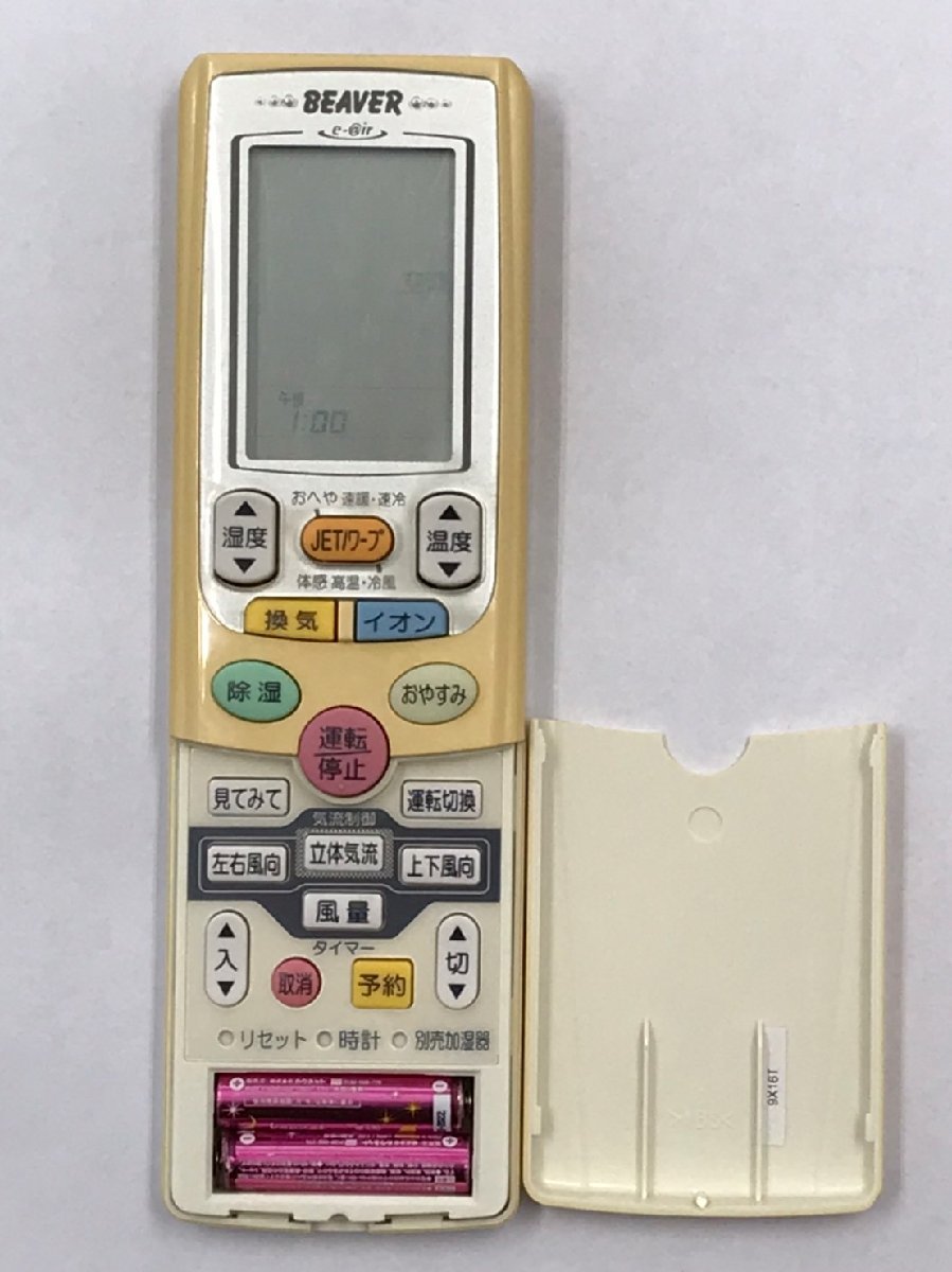 【BEAVER RKT502A500 電池付き】全体的にヤケ、黄ばみ、液晶に小傷あり。蓋が若干緩く感じますが気ならない程度で問題なく使用できます。リモコンのみの販売です。赤外線チェック済です。 すぐお使いいただけるよう電池付き(単4乾電池2個付き)で発送いたします! 電池は接触しないように紙を挟んでおりますので、到着したら引き抜いてからご利用ください。 1点1点専門スタッフが丁寧に検品、できる限りのクリーニングはしておりますが、落としきれない汚れ、ヤケ、キズ、黄ばみ等の劣化はあるものとお考えください。 見た目に関して神経質な方は購入をお控えください。 電池や設定の問題を解決し、使用できるようになっています。 使用できない場合はまずストアにご相談をお願いします。 設定の問題、対応機種間違い、本体側の問題等、リモコンが不良でない場合は保証対象外です。対応機種についてのご質問はお答えできかねます。 各メーカーへお問い合わせいただくか、検索から各機種の取扱説明書をご確認ください。 中古リモコンは現品限りとなりますので、ご希望の商品がございましたらお早めにご購入ください。 ※他店でもこちらと同じ中古リモコンを販売しております。そのため他店でお客様より先に購入があった際は、大変申し訳ございませんがご購入いただいた商品はキャンセルとさせていただきます。あらかじめご承知ください。