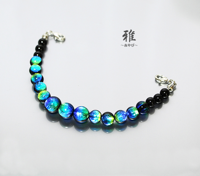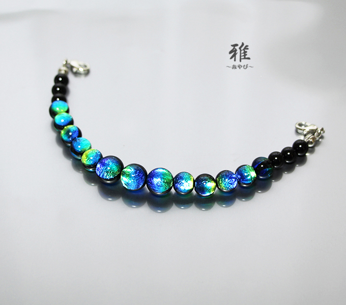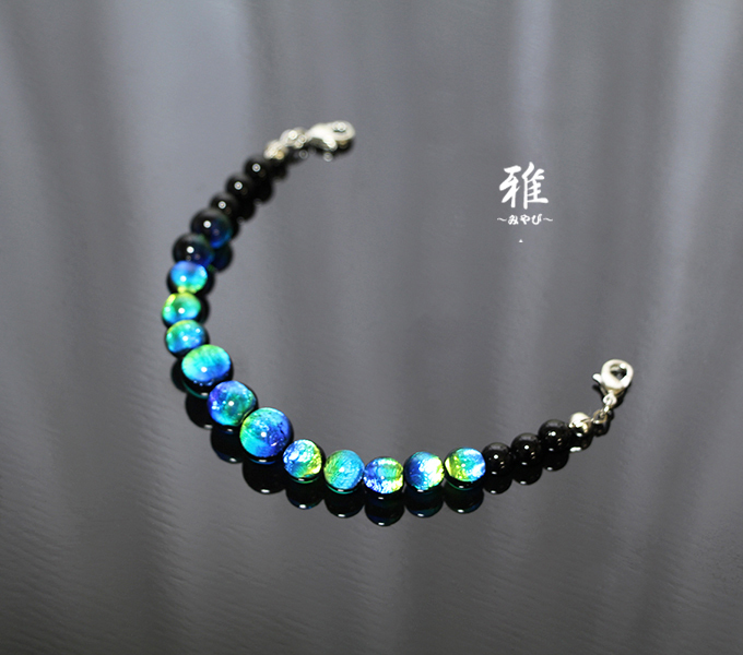【 雅 】 あまりに美しすぎる。o○ケラママリン蛍ガラス&オニキス 女性羽織紐