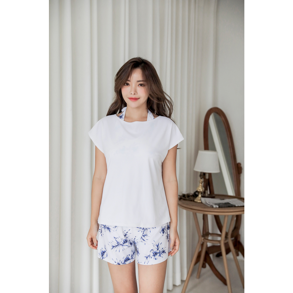 ・ブラカップはノンワイヤーでストレスフリーの着心地。肩紐とホルターネックのリボン結びでサイズの微調整も可能。取り外しできるパッド付き。