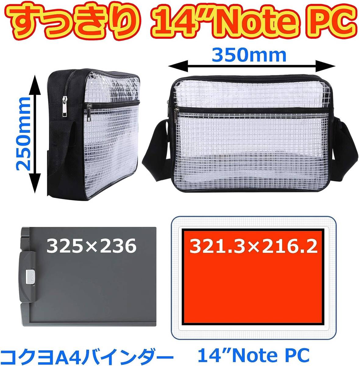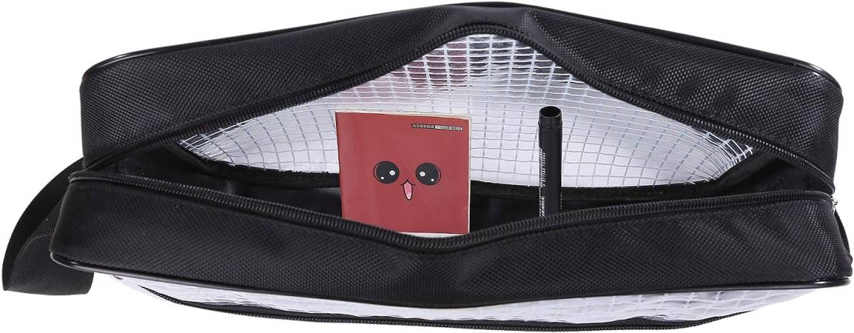 セキュリティの厳しい工場やスーパー、デパートの荷物検査、開けずに全部わかる、中が見える両面透明設計。