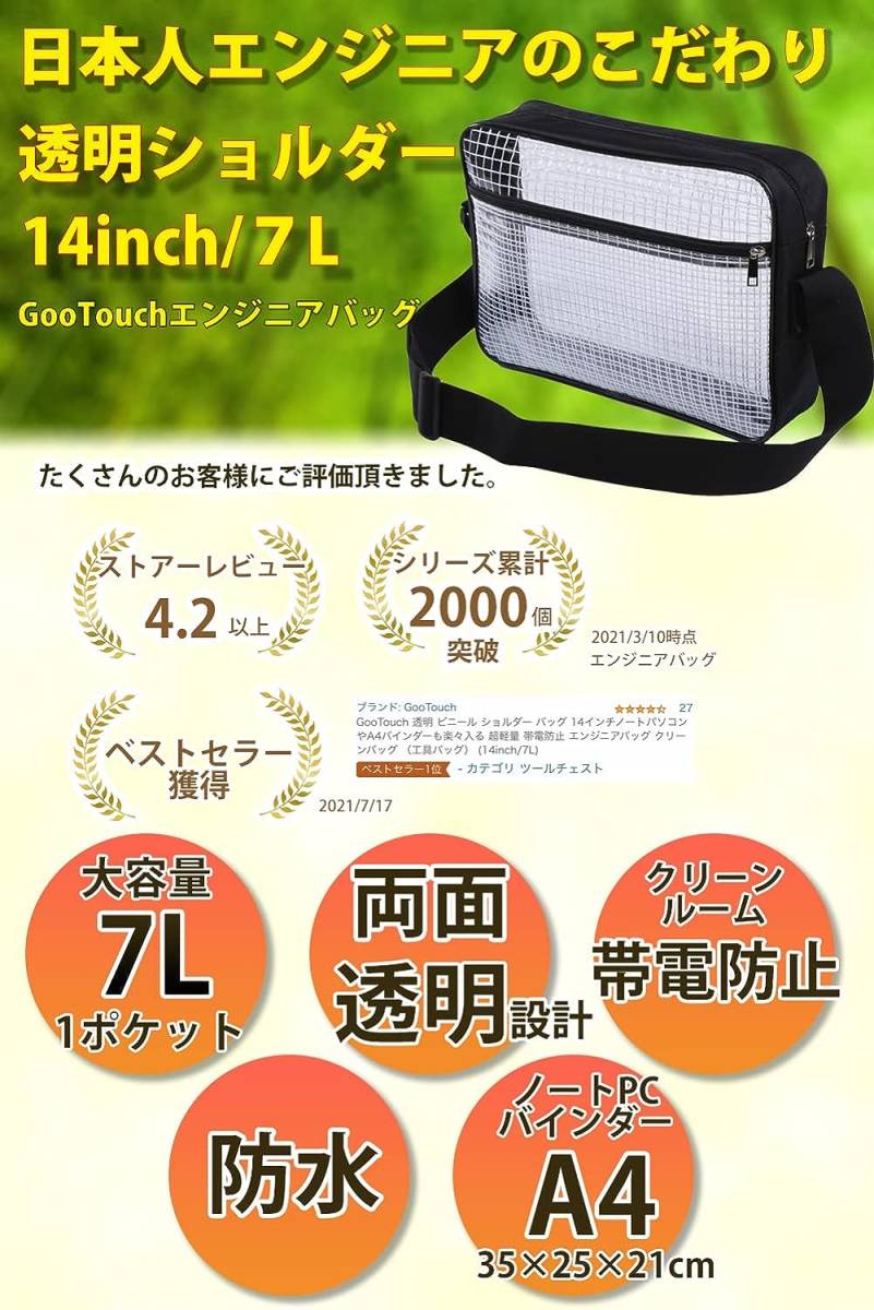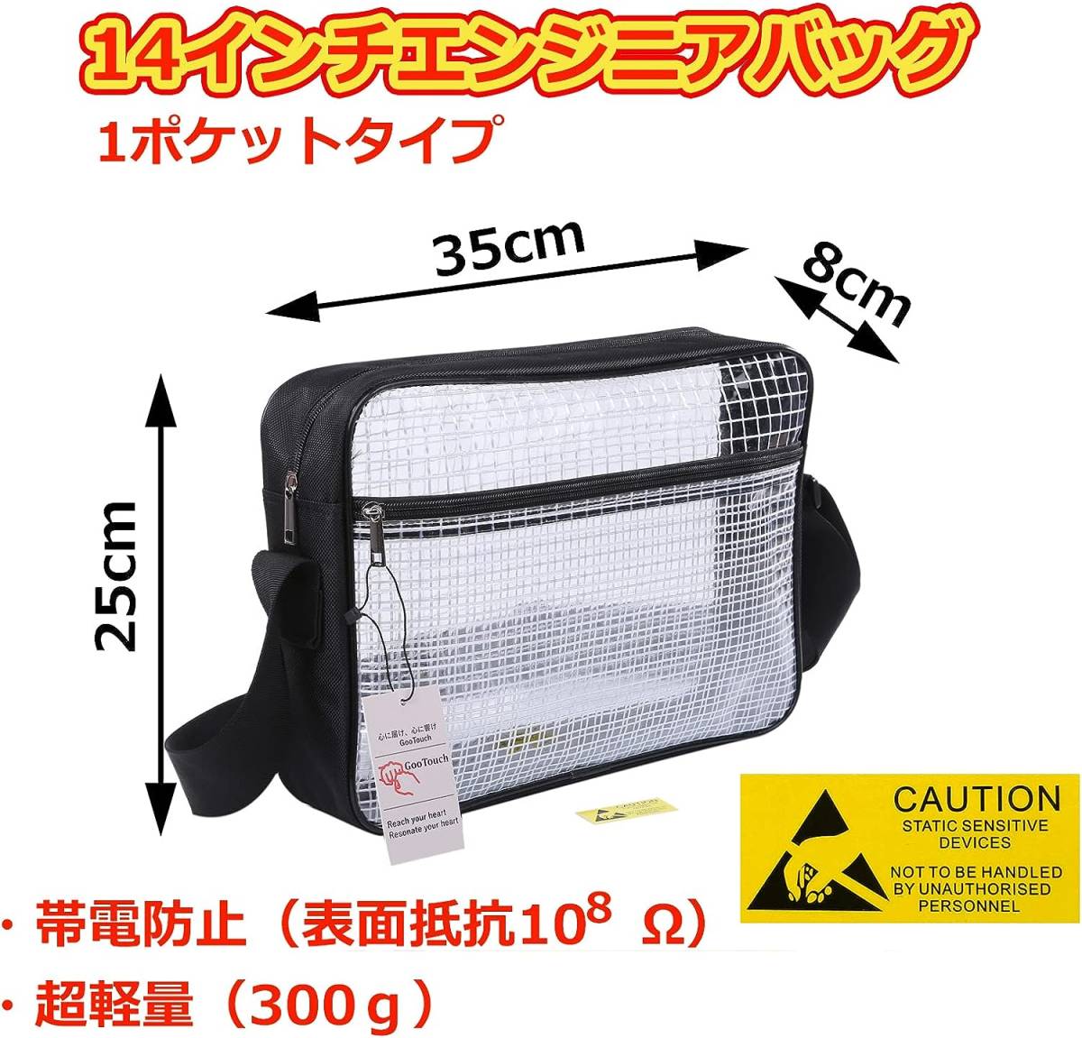 エンジニアバッグ 透明 道具袋 ショルダーバッグ クリーンバッグ クリンルーム クリアバッグ 工場 帯電防止 軽量 メッシュタイプ 男女兼用
