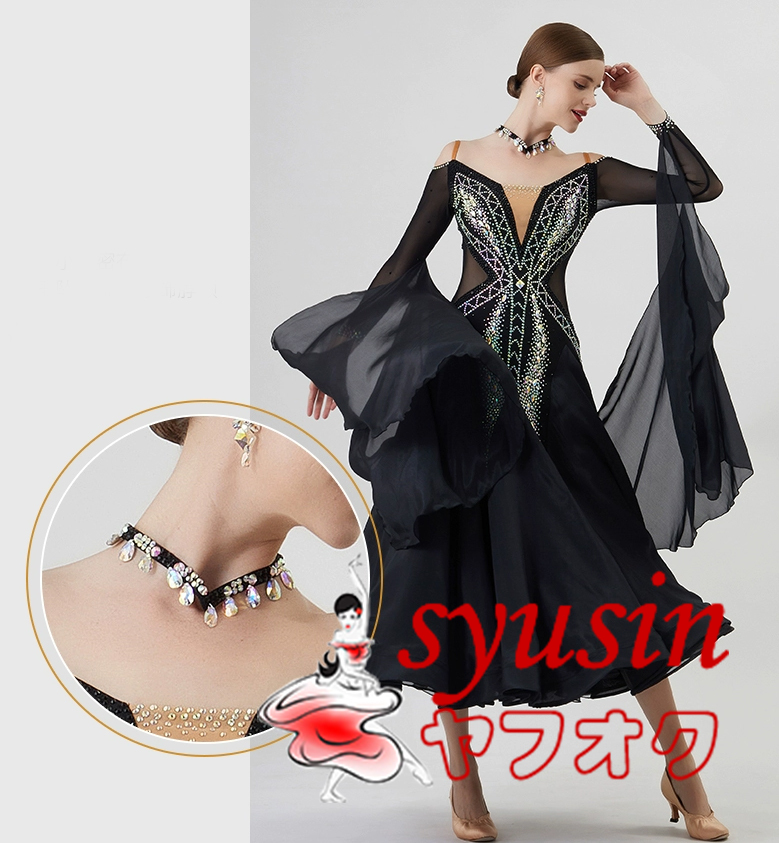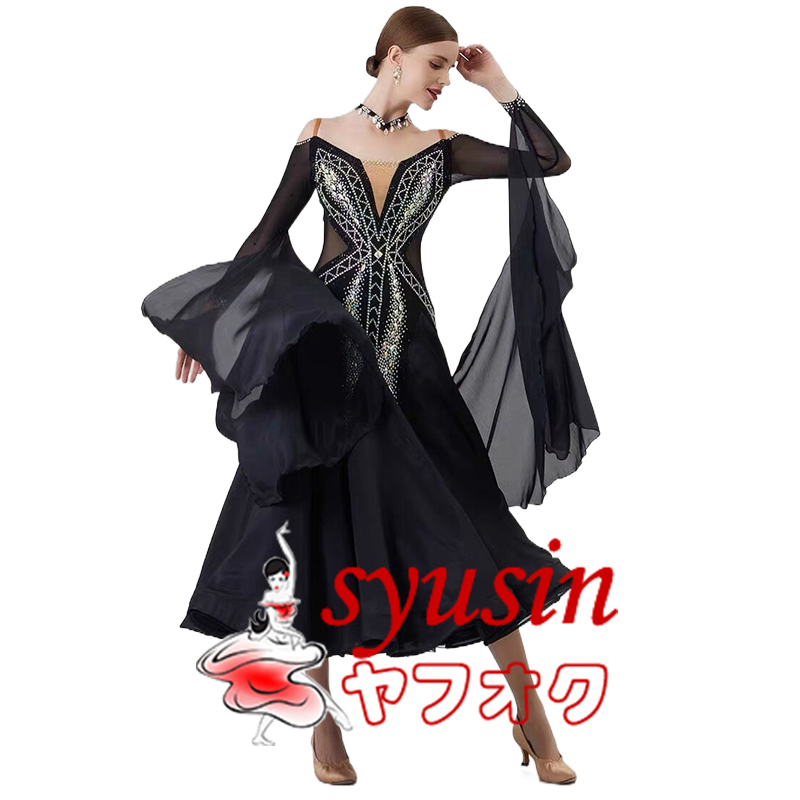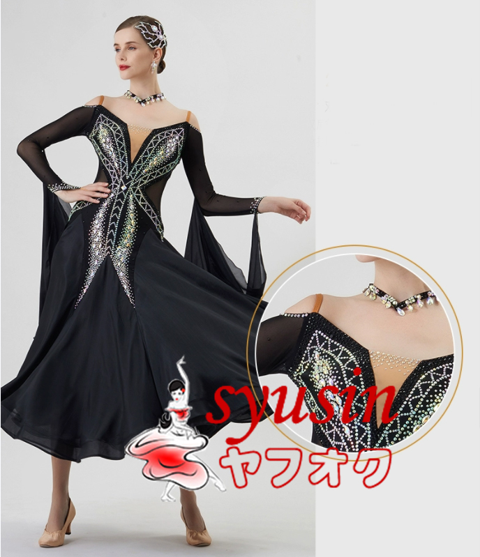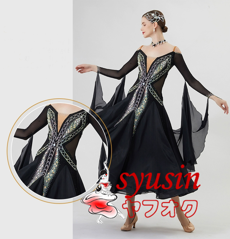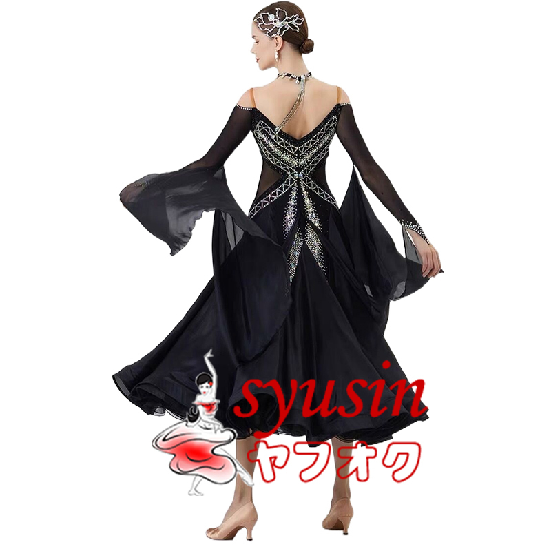 ★新品★ 社交ダンス衣装 レディース用社交ダンス衣装 モダン競技試合ドレス デモ用ハイクオリティドレス ブラック135