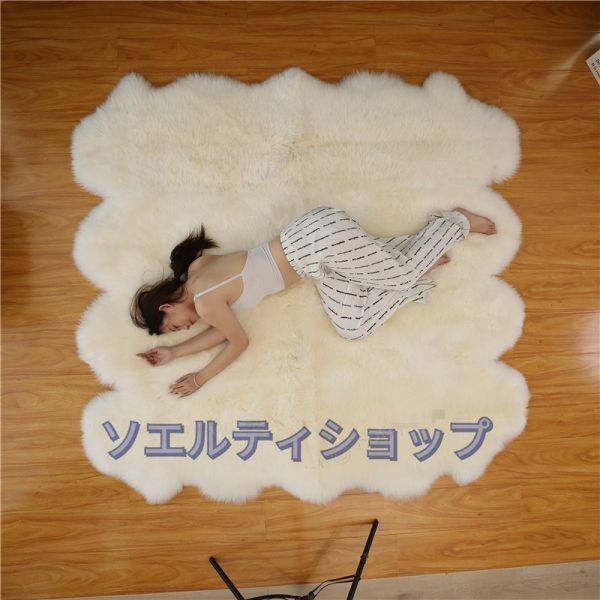 人気美品★ ムートンラグ ムートン 長毛 ラグ あったか リアル 高級感 厚手 ピースラグ ラグマット