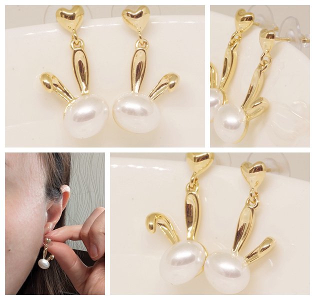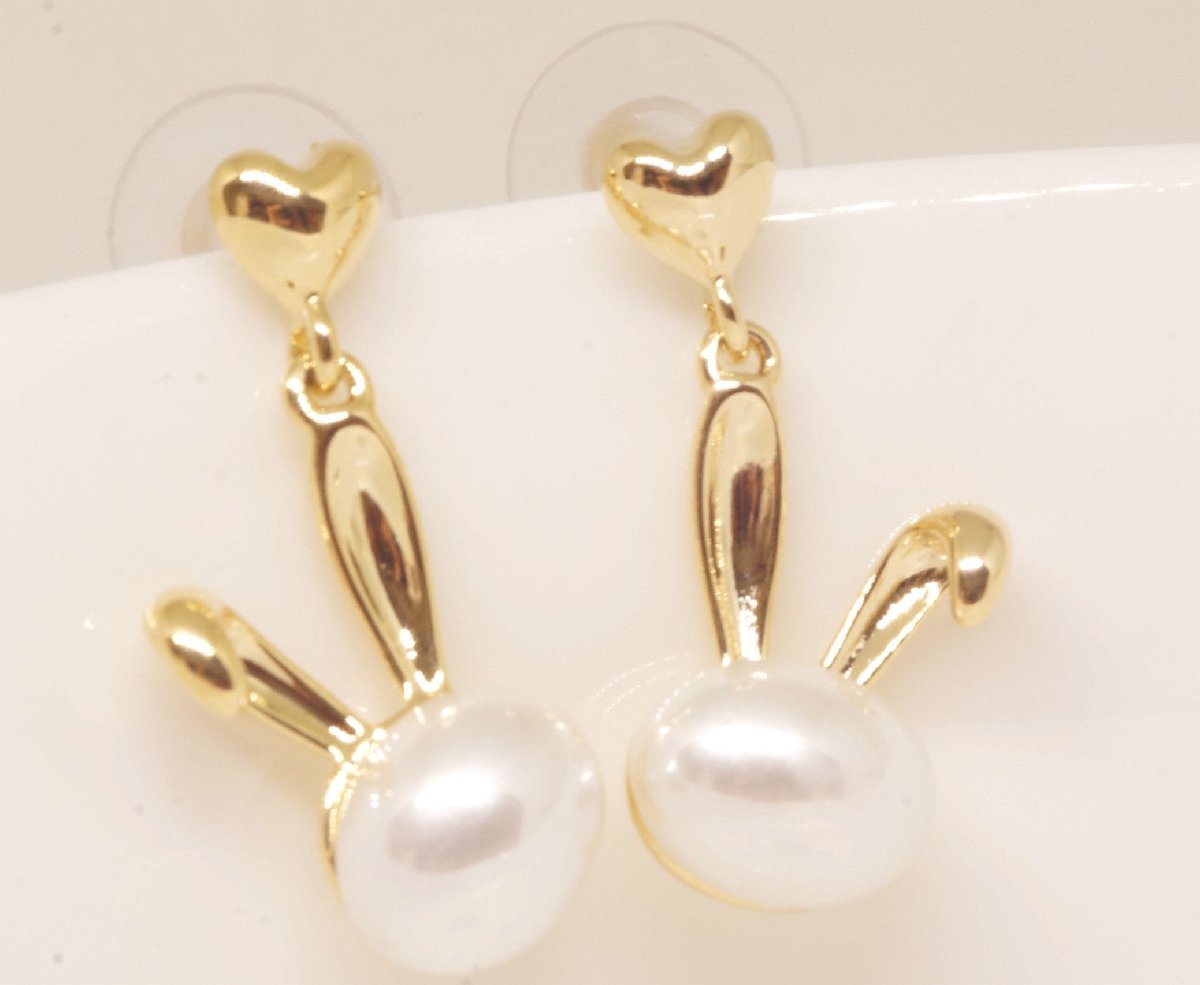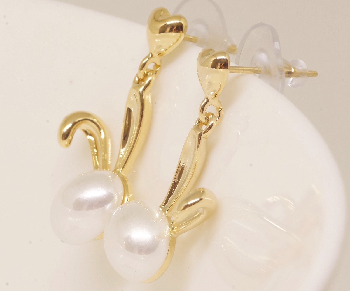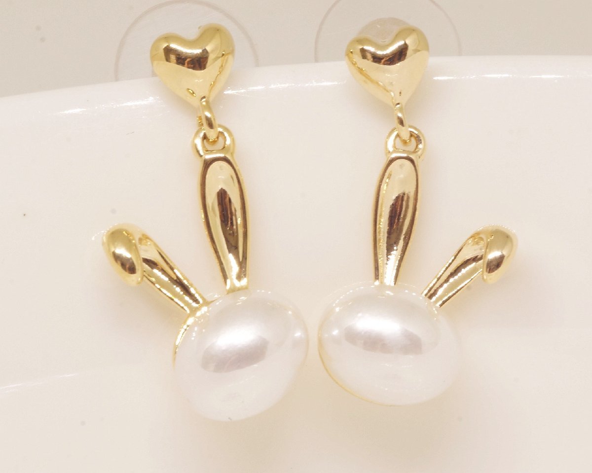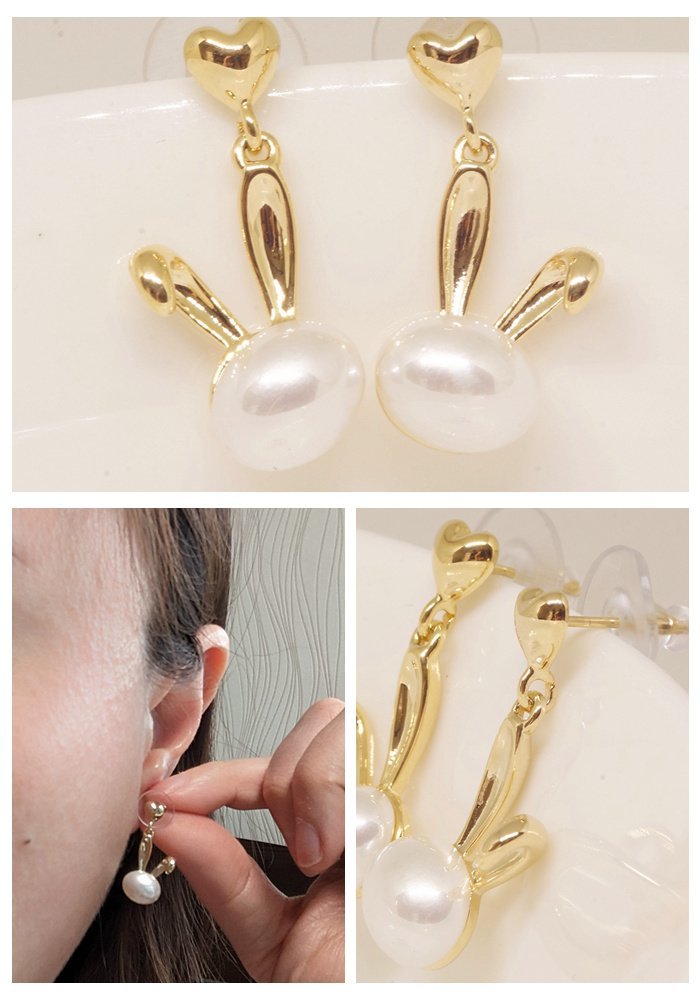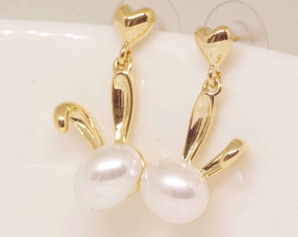 18K RGP ゴールド ハート ウサギ 揺れ ピアス gp5651 |