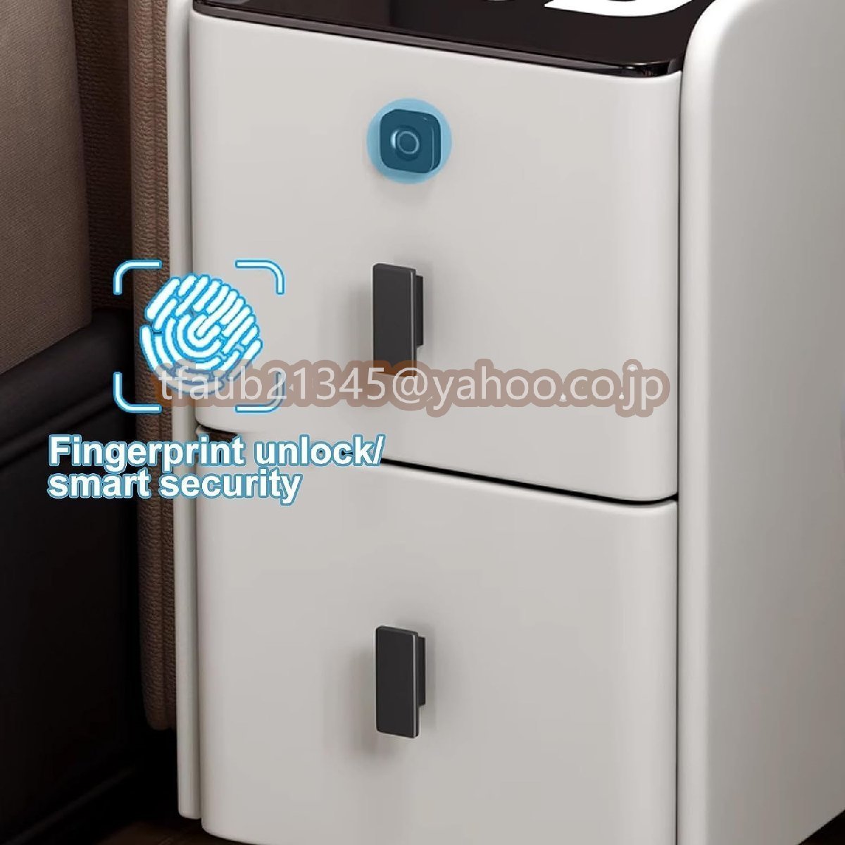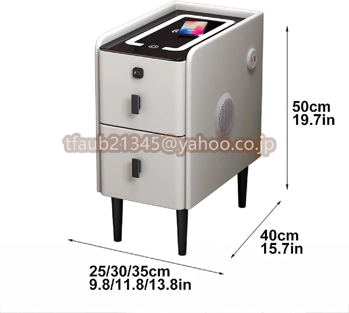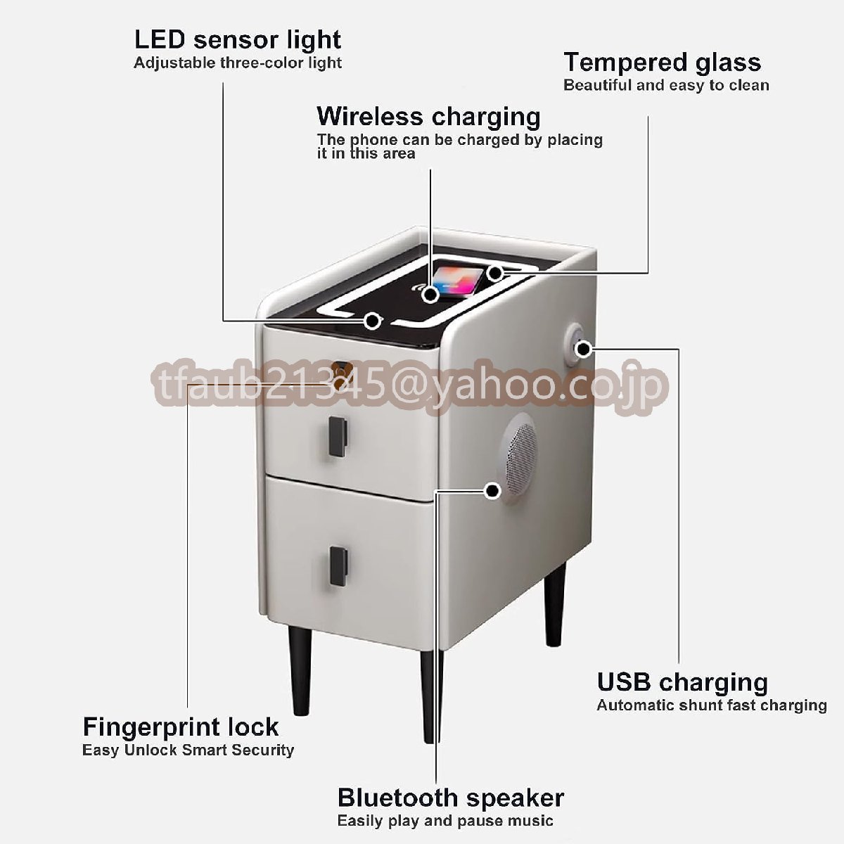 多機能 無垢材のベッドサイドテーブル ローチェスト サイドテーブル コンセント付き 指紋ロック USBポート LEDライト (30x40x50cm)