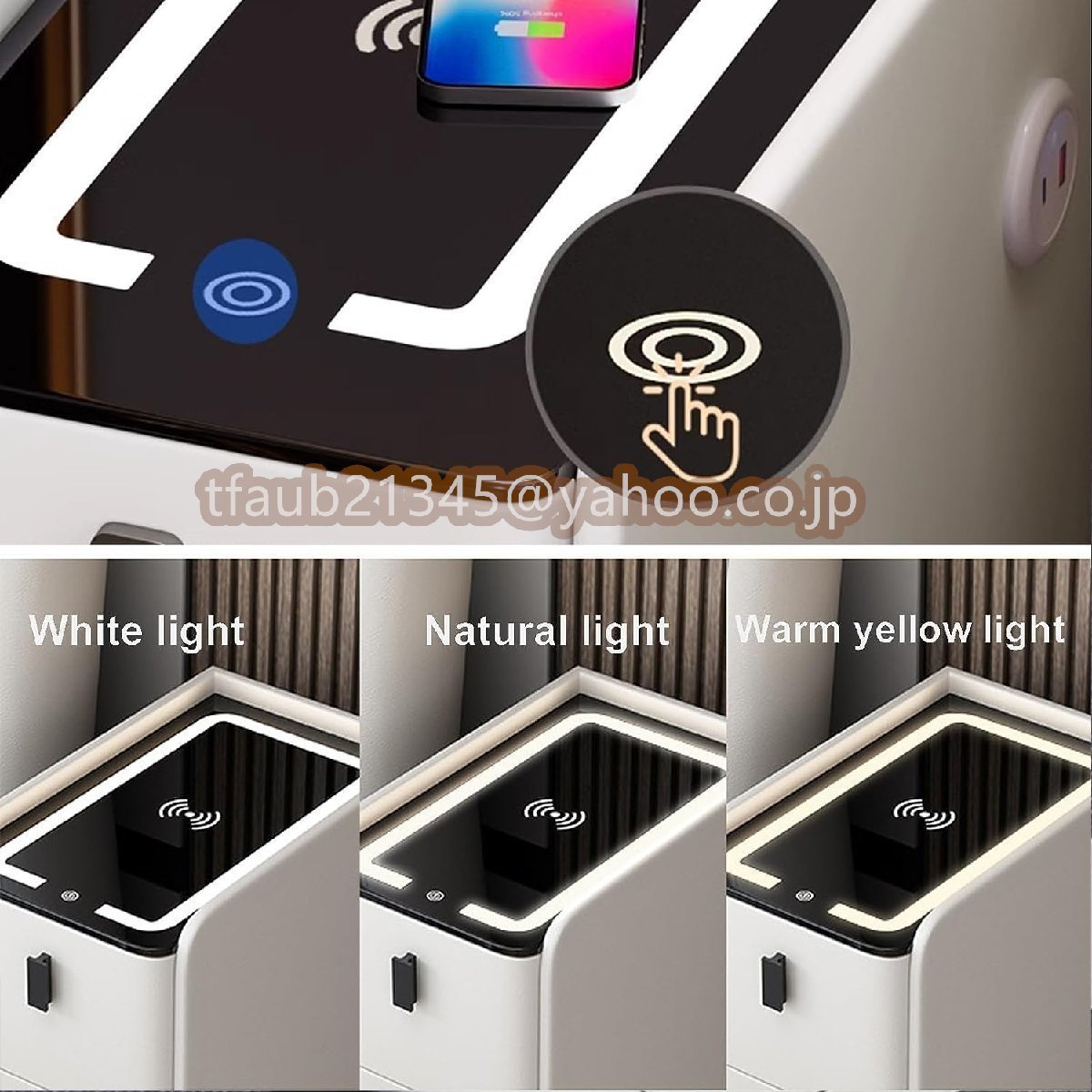 充電ステーション付きのこのベッドサイドテーブルには調節可能なLEDライトが装備されており、ニーズやシーンに応じて光と明るさを選択でき、とても楽しくて便利です。