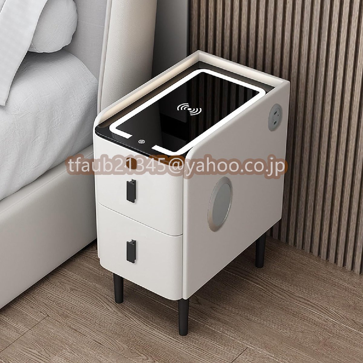 このスマートなナイトスタンドにはワイヤレス充電ステーションが付属しており、携帯電話をテーブルの上に置くだけで急速充電でき、USB ポートも付いています。