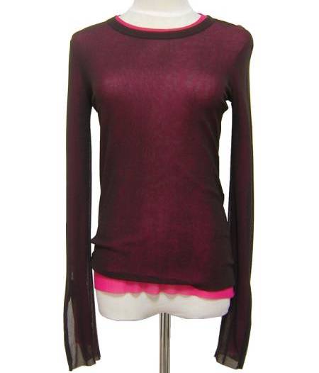 FUZZI のイタリア製、 チュールレイヤードカットソーでございます。 伸縮性あり/2枚仕立て/袖口ジップ | |