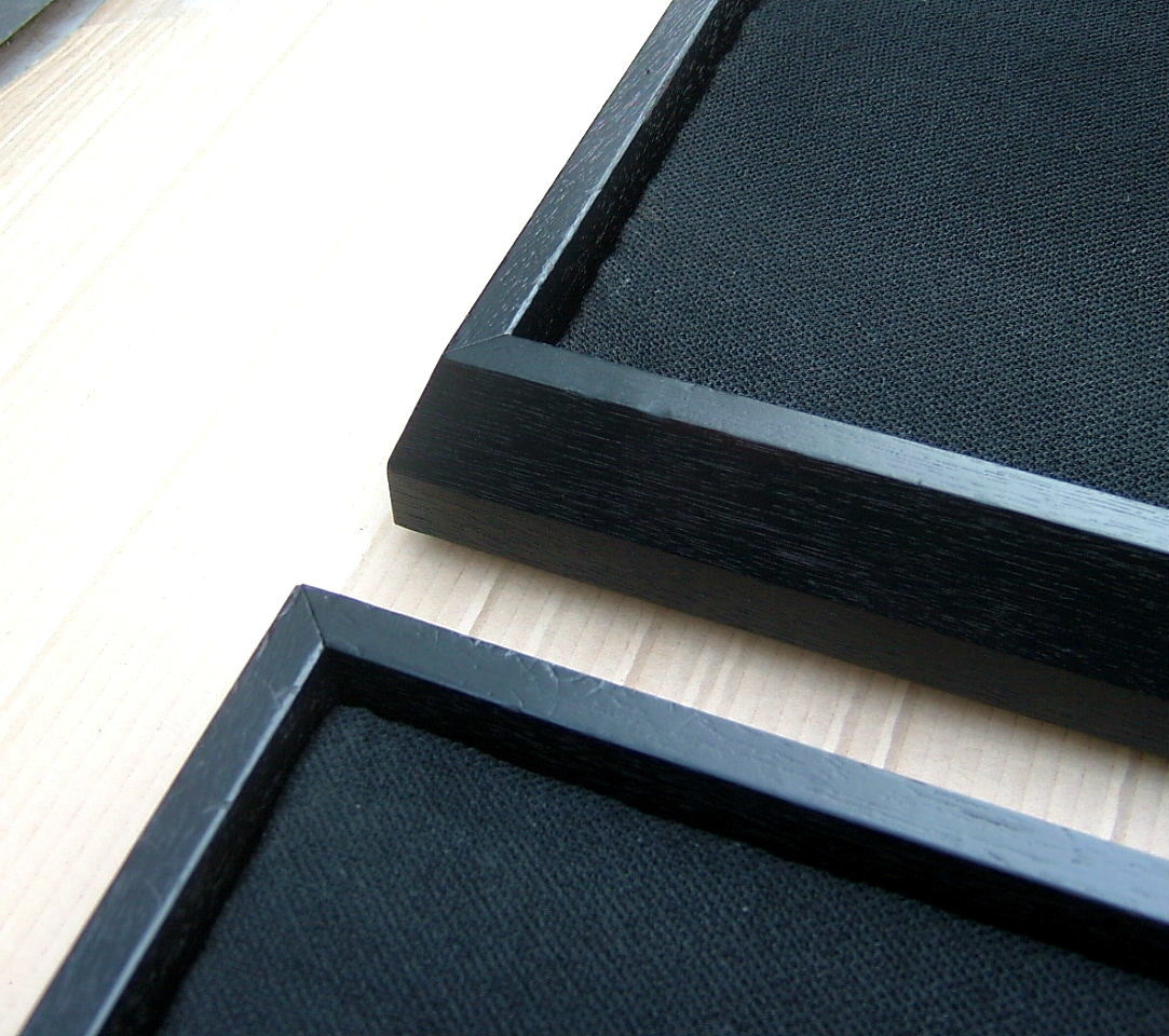 ■RASK鋳鉄焼結成型プレート板の生地部分は生地を染色可能な専用特殊染料にて染色塗装を施した後で木枠に再接合させています これにより黒生地に綺麗に仕上がっております 中古ベースですので綺麗な雰囲気を損ねるものではございませんが神経質ですが見る角度や光源によっては若干の染色ムラが認知されますことご了承ください