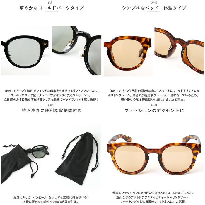 商品説明 | ・・偏光レンズの先にある、眼に優しいクリアな視界。超視界偏光サングラス「冒険王」シリーズに「バンビーノ」が仲間入り。 ・【目元に華やかさをプラス】 ・柔らかな丸みのあるシェイプがアウトドアだけでなく、タウンユースのスタイルにも素敵にマッチ♪「バンビーノ」は、あらゆるシーンで目元に華やかさを添えるハイファッションシリーズ。 ・【お洒落なだけじゃない♪】 ・シックな色合いのレンズには、偏光機能付き特殊ライトカラーレンズを採用。日射しの照り返しや水面のギラつきなど、屈折・反射する眩しい光を取り除いて、クリアな視界を確保。 ・【紫外線99%以上カット】 ・眩しい日射しとともに降り注ぐ紫外線も約99%ブロック!日焼けの気になる季節や目の健康を守りたい方に最適。 ・【ブルーライトにも効果的】 ・パソコンやスマホの画面から発せられる有害な「ブルーライト」もカット。デスクワークによる目の疲れ予防やストレスの軽減にも効果的。 ・【選べるレンズカラー】 ・シックなライトスモークから涼やかな目元を演出するライトブルーまで、バラエティに富んだカラーのレンズが日射しの眩しさを低減。(※可視光線透過率は、55%~40%まで、カラーにより異なります。) ・【華やかなゴールドパーツタイプ】(BN-1シリーズ) ・知的でマイルドな印象を与えるウェリントンフレームに、ゴールドのダイヤ型メタルパーツがキラリと光るワンポイント。立体感のある目元を演出するクリアな鼻当てパッドでフィット感も抜群! ・【シンプルなパッド一体型タイプ】(BN-2シリーズ) ・男性の顔の輪郭にもスマートにフィットするレトロなボストンフレーム。鼻当てが樹脂製フレームと一体になっているため、軽い掛け心地と普段使いに嬉しい丈夫さを両立。 ・【持ち歩きに便利な収納袋付き】 ・お気に入りの「バンビーノ」をいつでも気軽に持ち歩ける!携帯に便利な巾着タイプの収納袋が付属。 ・【ファッションのアクセントに】 ・普段のファッションにさりげなく取り入れられるのはもちろん、登山などのアウトドアアクティビティーやマリンリゾート、ウォーキングなどの日頃のフィットネスにも大活躍。 |