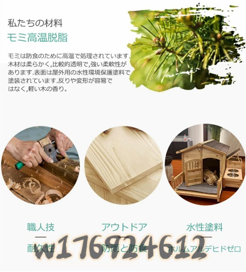 ペット小屋は塗料や接着剤を使わないサーモウッド※(杉木(スギノキ)ベース)を使用します。 耐食性、耐水性が優れていて、長く使い続けます。ペットのを保護するように設計されて、ドアと窓に金網が付け、周りがしっかり保護処置を施すことで、 安全性の向上を実現します。
