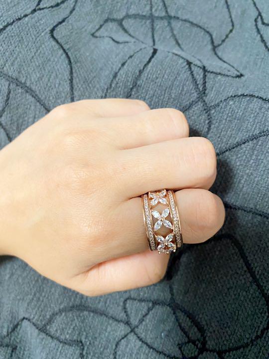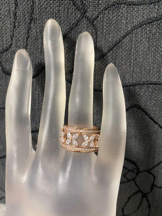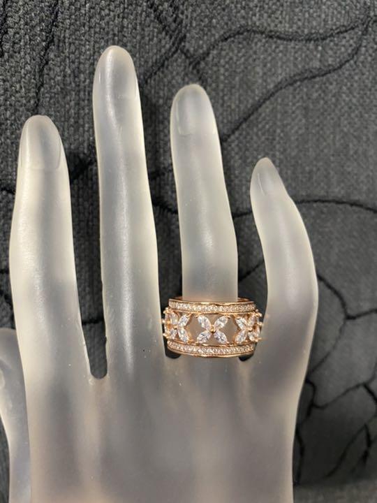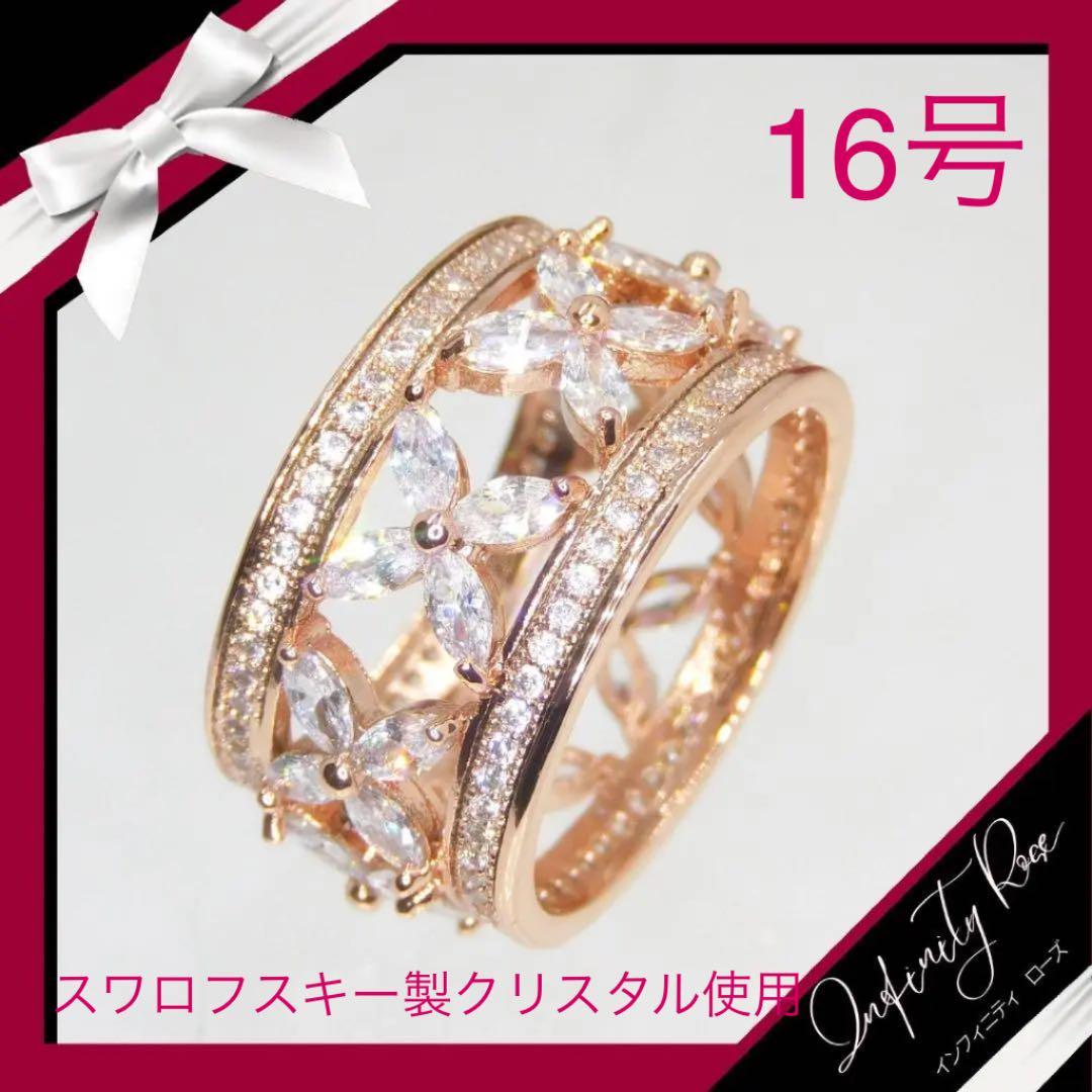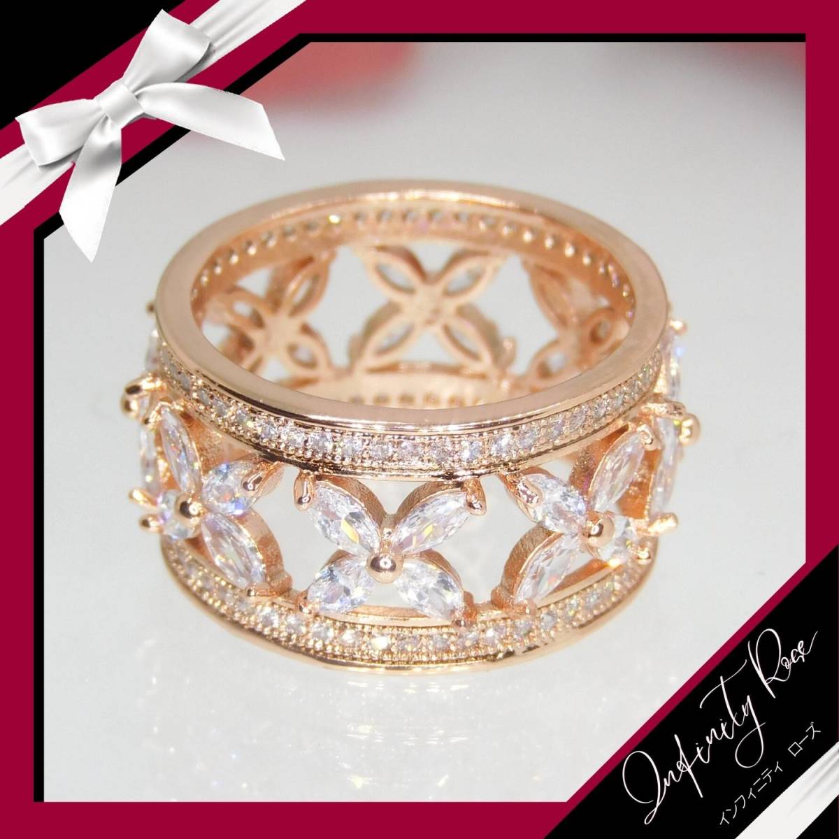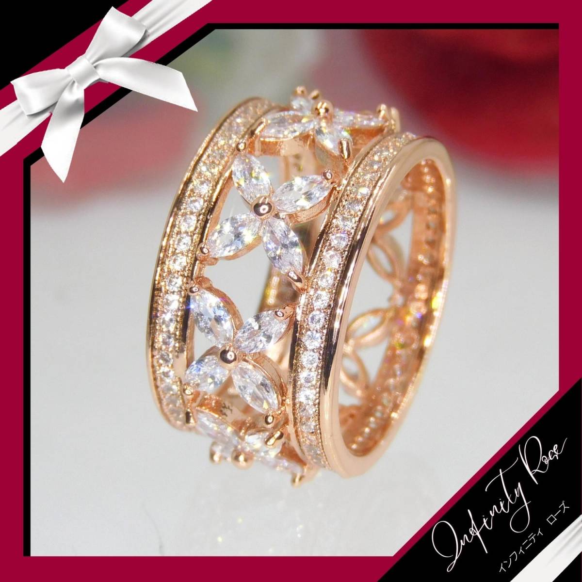 (1228)16号 ピンクゴールド豪華無数のフラワーワイドリング高品質 指輪 指輪 スワロフスキー製クリスタル使用