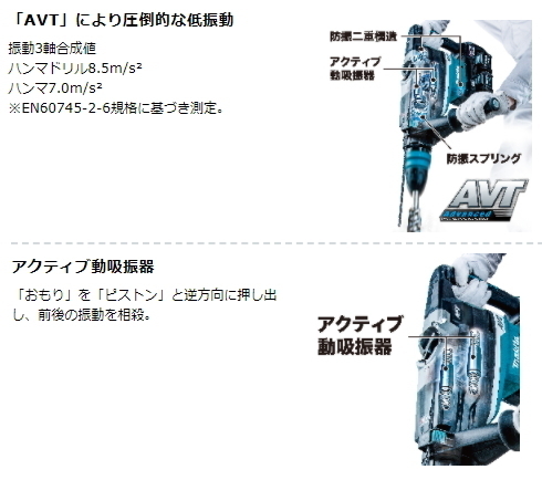 振動3軸合成値 ハンマドリル8.5m/s2 / ハンマ7.0m/s2 ※EN60745-2-6規格に基づき測定。