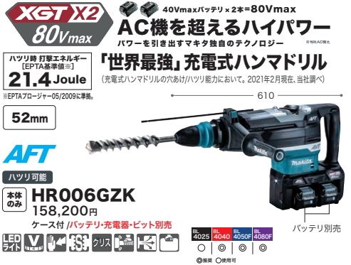 マキタ 52mm充電式ハンマドリル HR006GZK[80Vmax(40Vmax x2)]