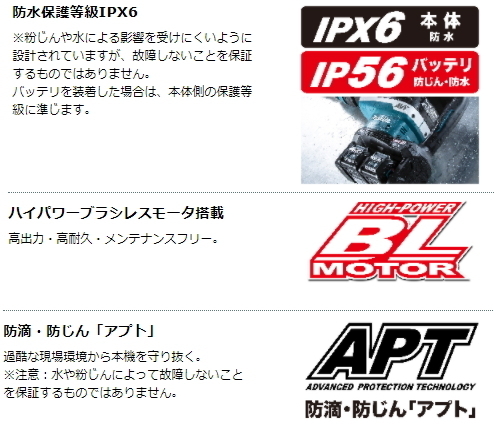 バッテリを装着した場合は、本体側の保護等級に準じます。