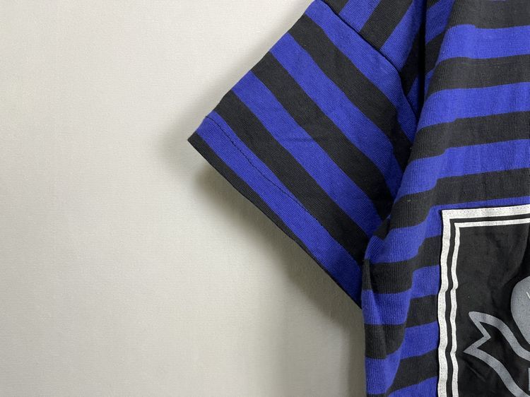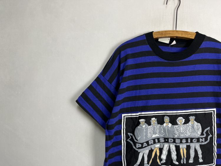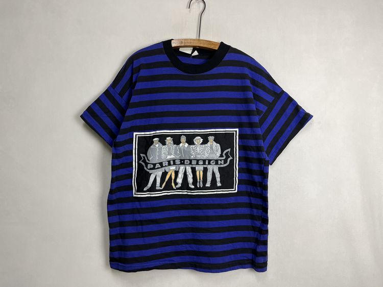 グッドプリントUSA製~90sビンテージ半袖クルーネックボーダープリントTシャツL相当PARIS DESIGNアメカジストリートnr23987