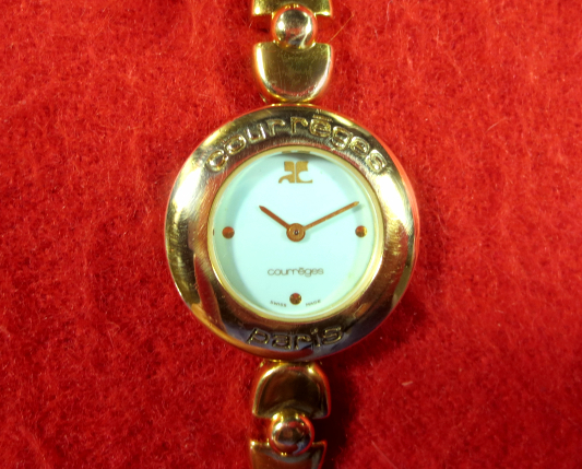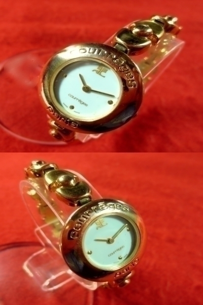 BR5M1)◎完動腕時計送料無料(定形外)★クレージュ★ブルー文字板★2針ゴールド