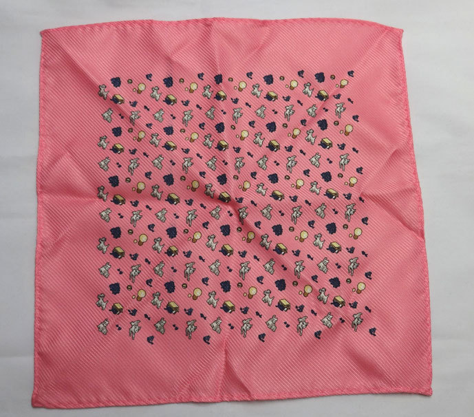 ●ポケットチーフ 特価 在庫限り!サーモンピンク 柄タイプ ※ピンクに柄でパーティーにもOK♪アニマル柄♪動物柄♪在庫1 |